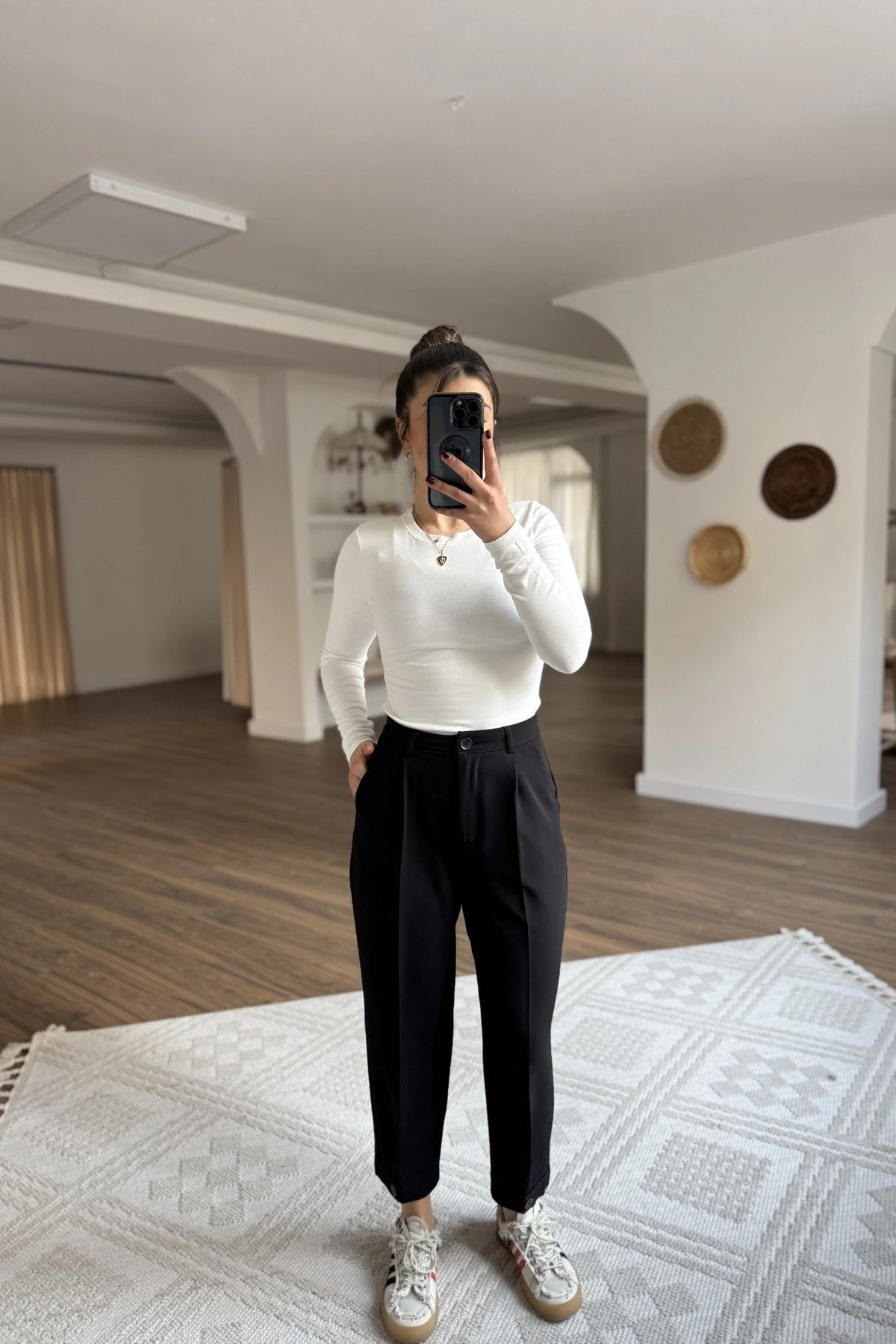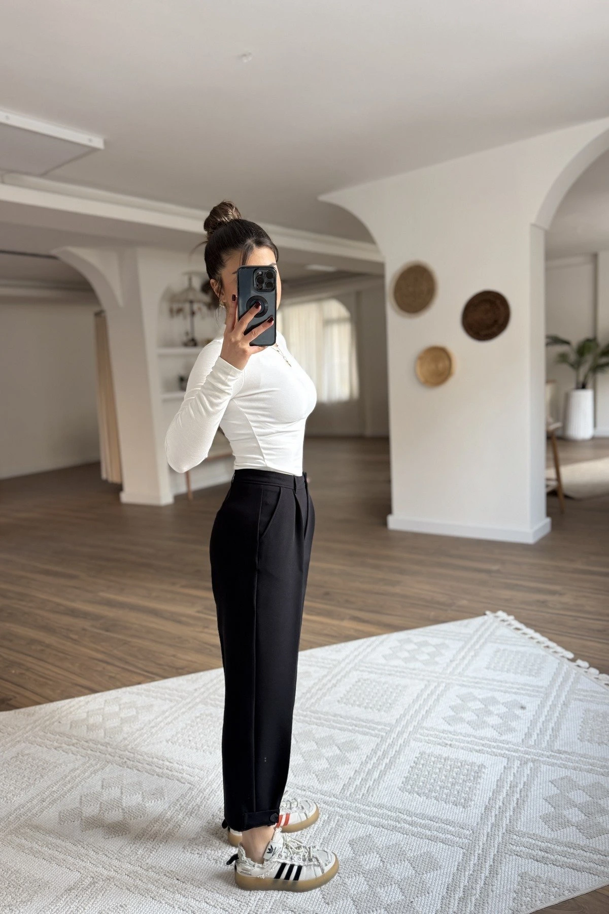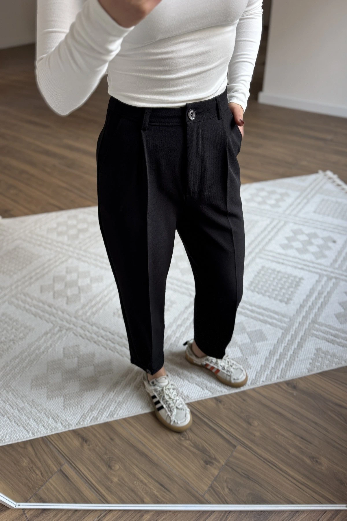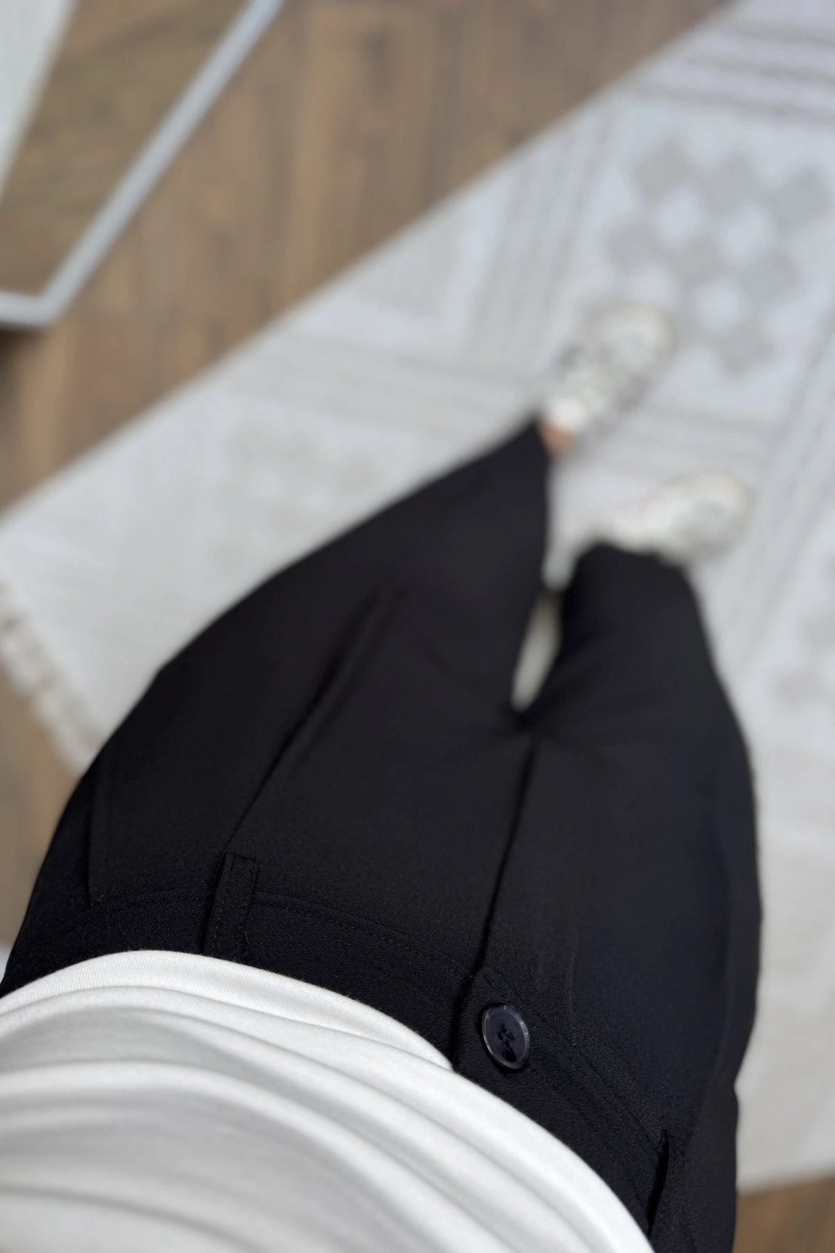 PAÇA DÜĞME DETAY PAMUK HAVUÇ MODEL KUMAŞ PANTOLON – SİYAH