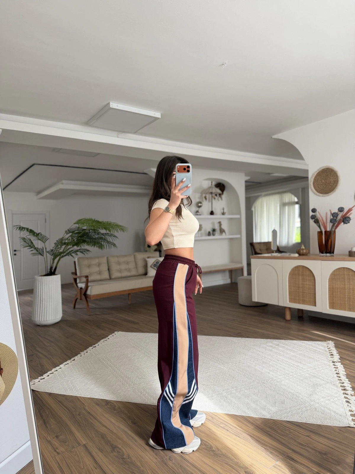 PAÇA JEAN DETAY PARÇALI BOL PAÇA VİSKON PAMUK PANTOLON – BORDO