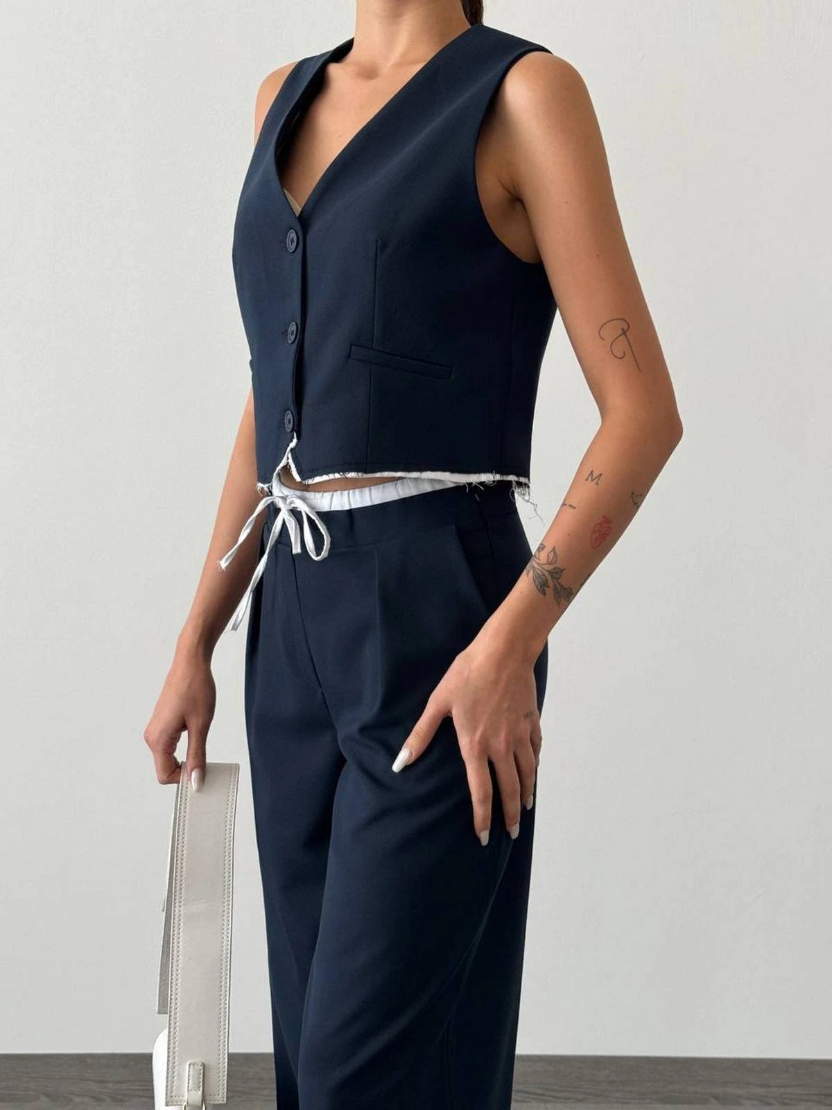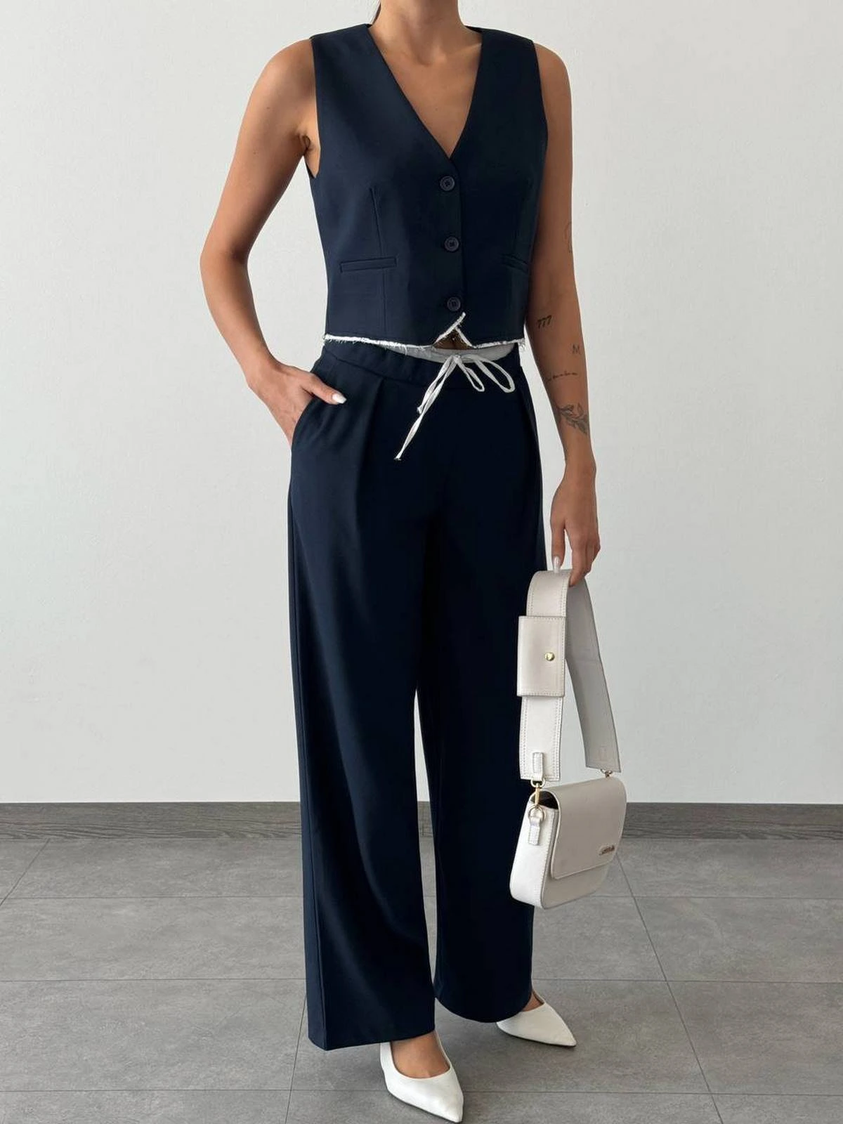 POPLİN KEMERLİ ÇİFT CEP BOL PAÇA PANTOLON – LACİVERT