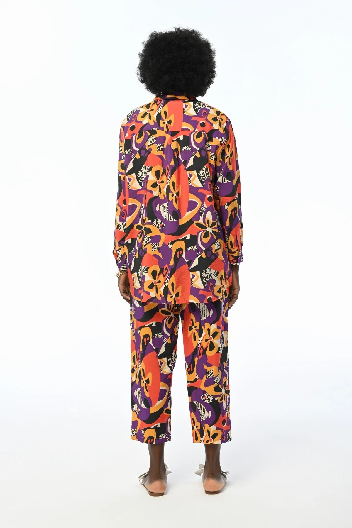 RENKLİ DESEN MODAL SALAŞ GÖMLEK - RENKLİ