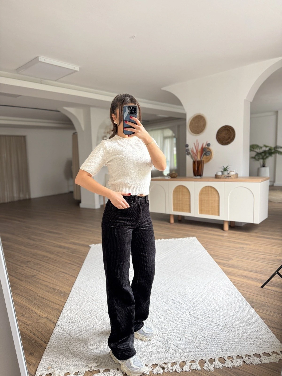 STRAIGHT YÜKSEK BEL KADİFE PANTOLON – SİYAH