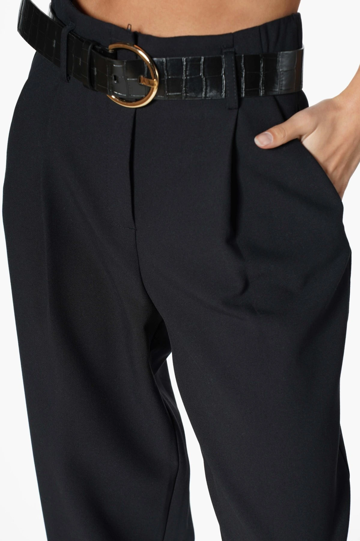 TEK PİLE HAVUÇ MODEL KEMERLİ PANTOLON – SİYAH