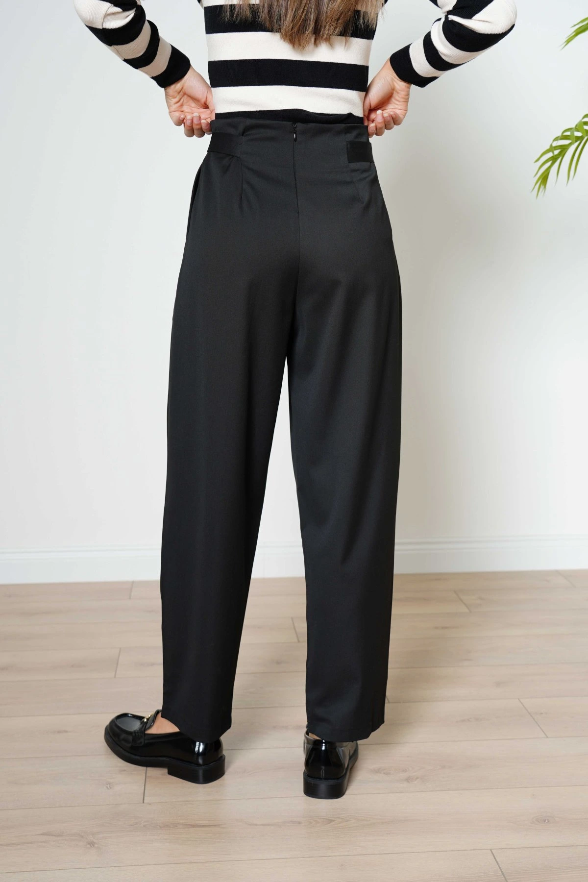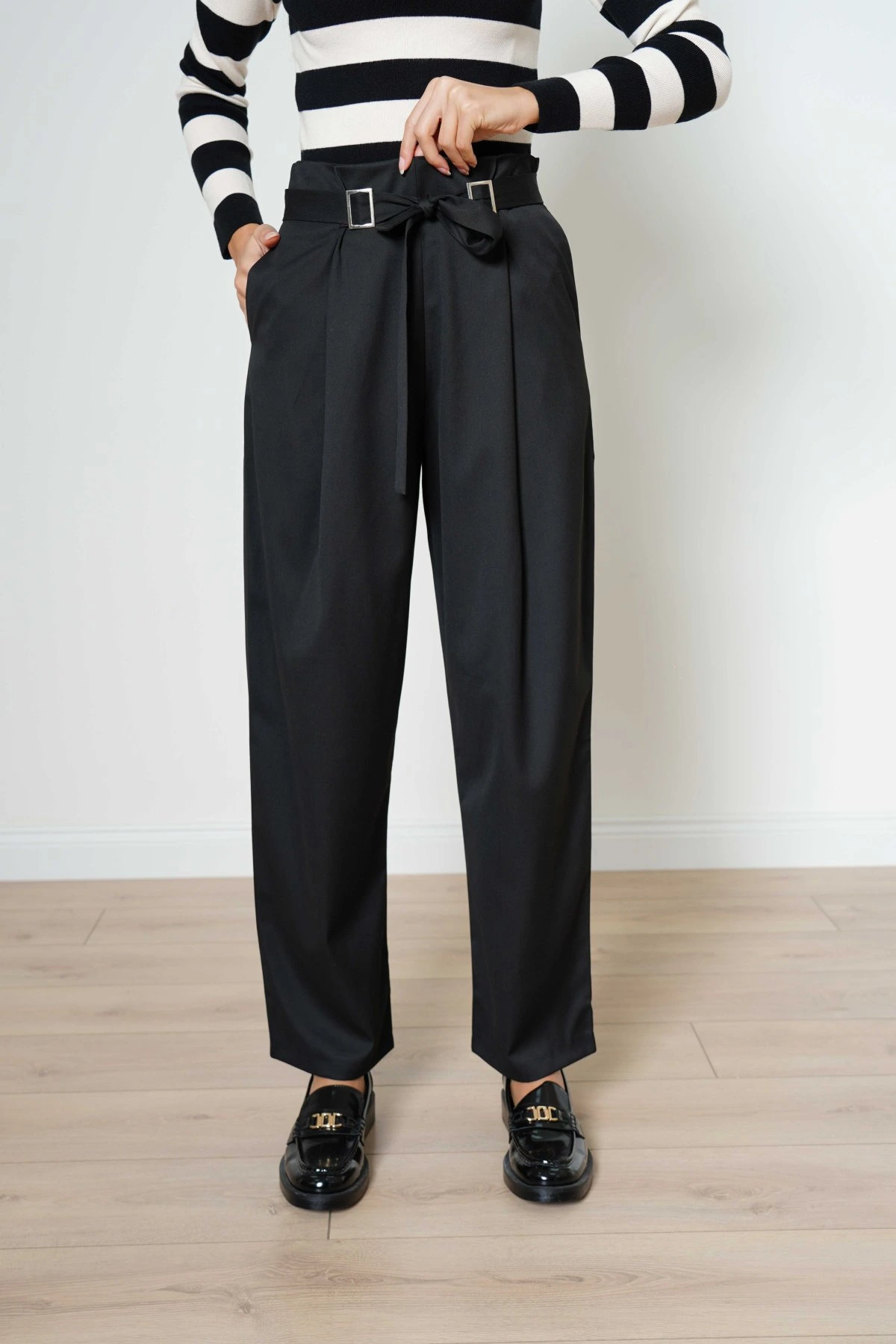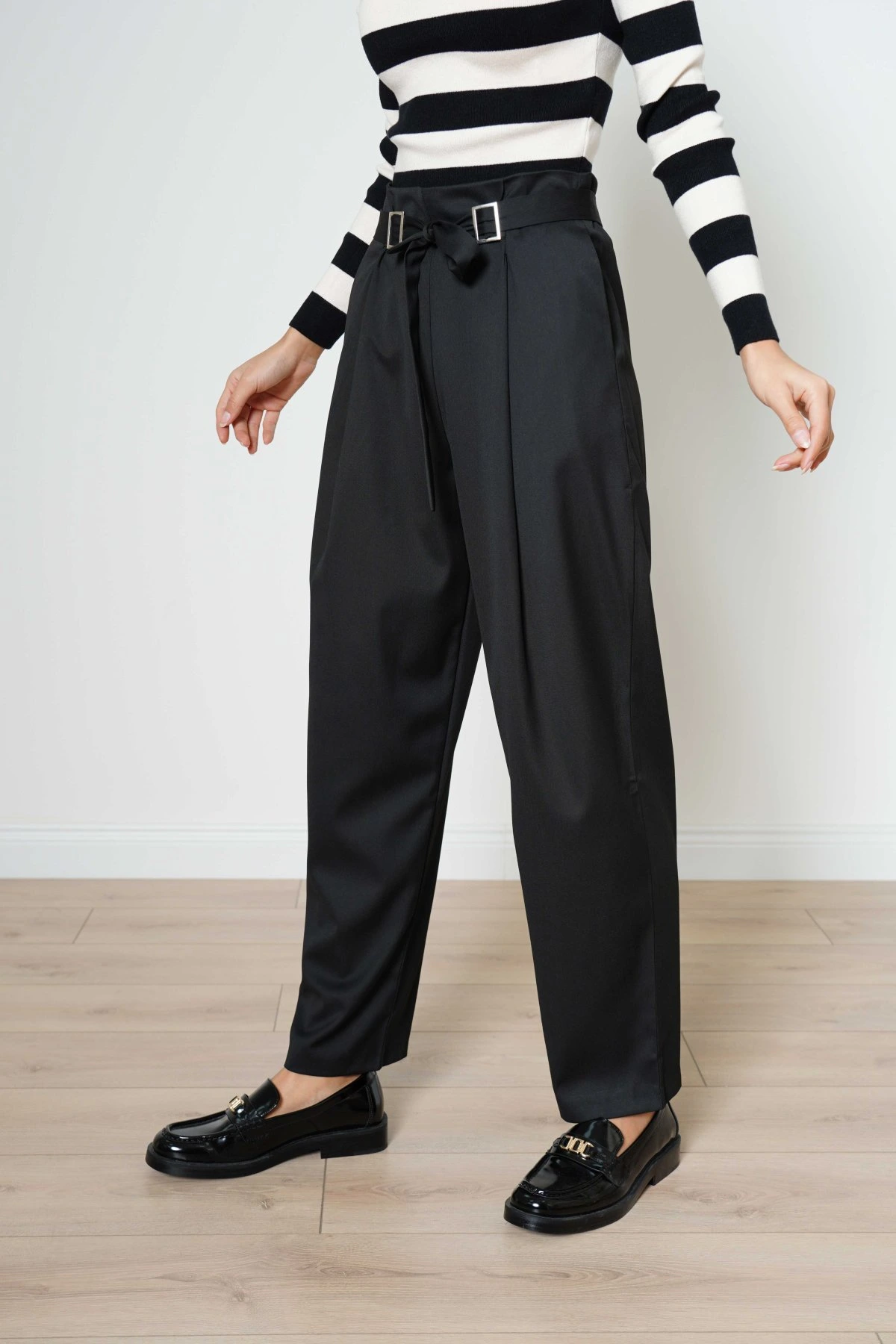 TEK PİLE KENDİNDEN TOKALI KUMAŞ PANTOLON – SİYAH