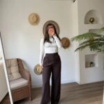 TEK PİLE YÜKSEK BEL BOL PAÇA LİKRALI PANTOLON – KOYU KAHVE