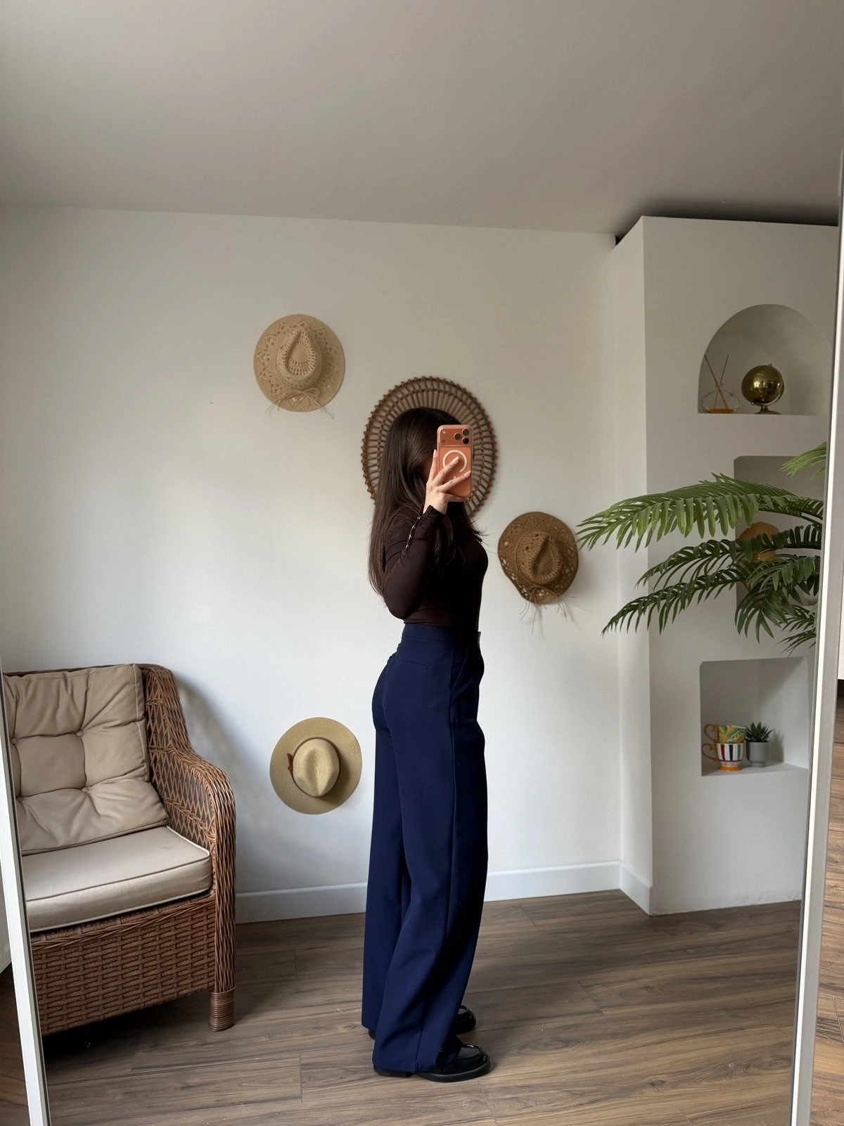 TEK PİLE YÜKSEK BEL BOL PAÇA LİKRALI PANTOLON – LACİVERT