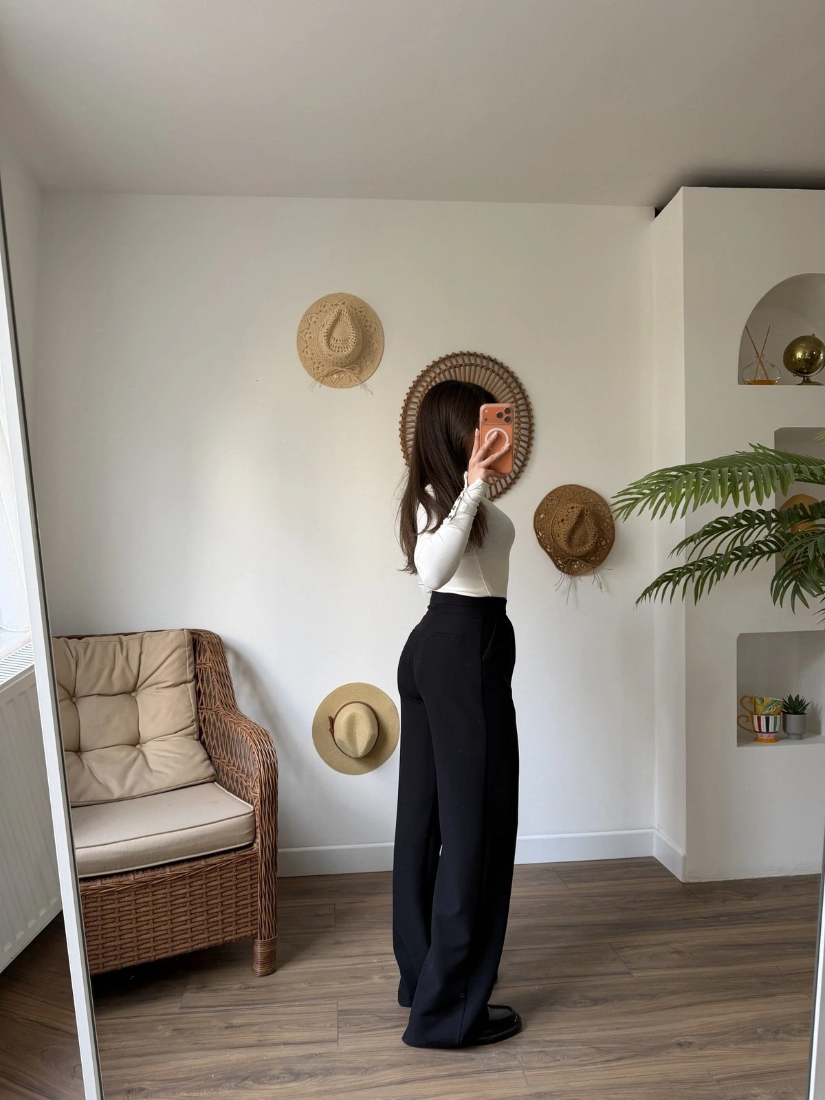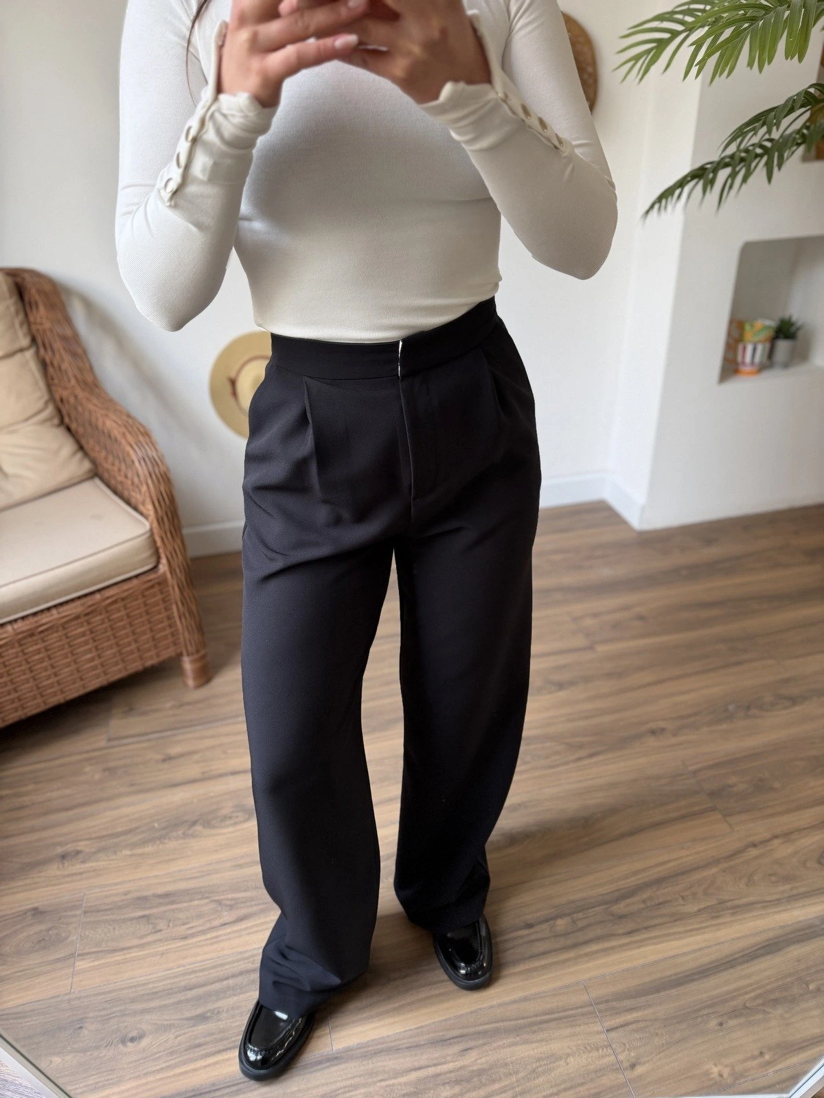 TEK PİLE YÜKSEK BEL BOL PAÇA LİKRALI PANTOLON – SİYAH