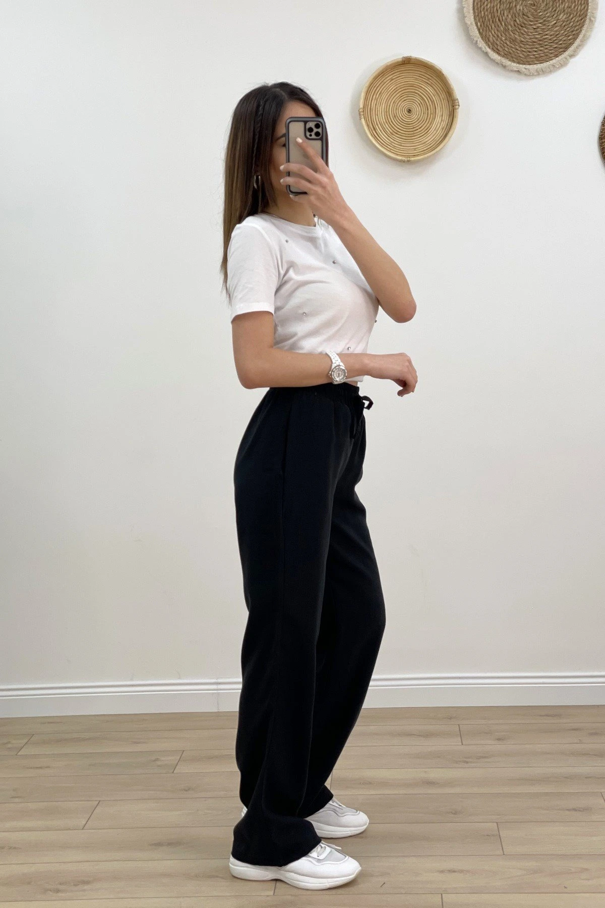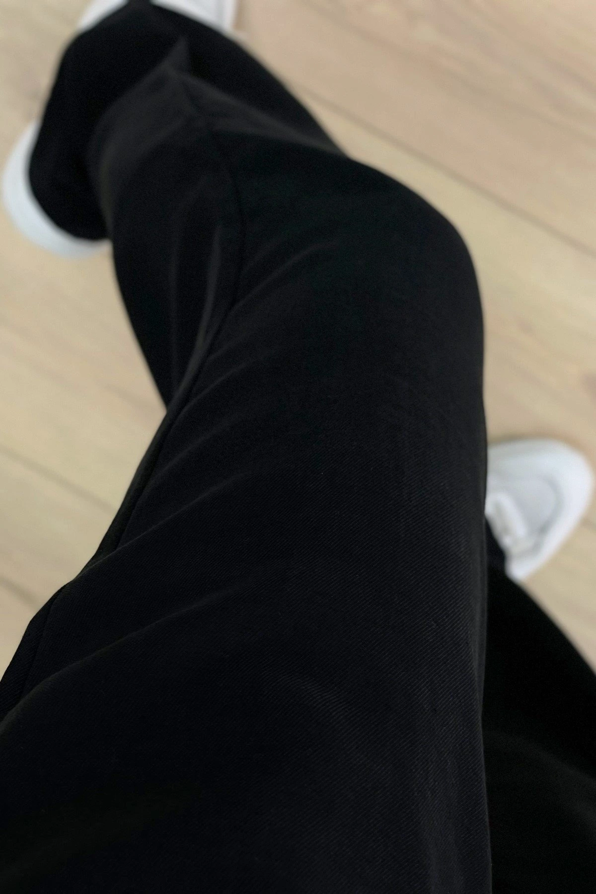 ÜÇ CEPLİ BEL LASTİKLİ RAHAT PAMUK PANTOLON – SİYAH