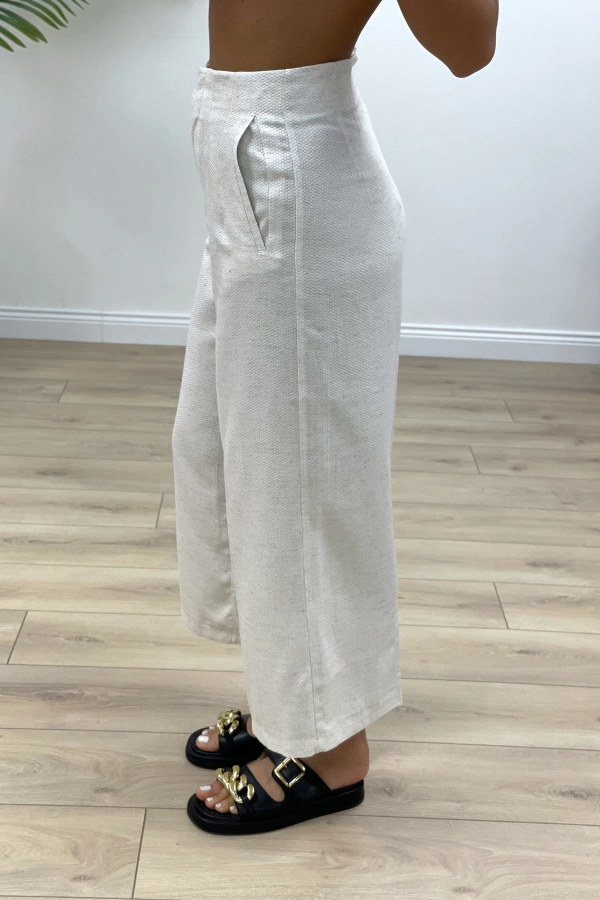 VİSKON BERMUDA ARKA BEL DETAY PANTOLON – KEMİK