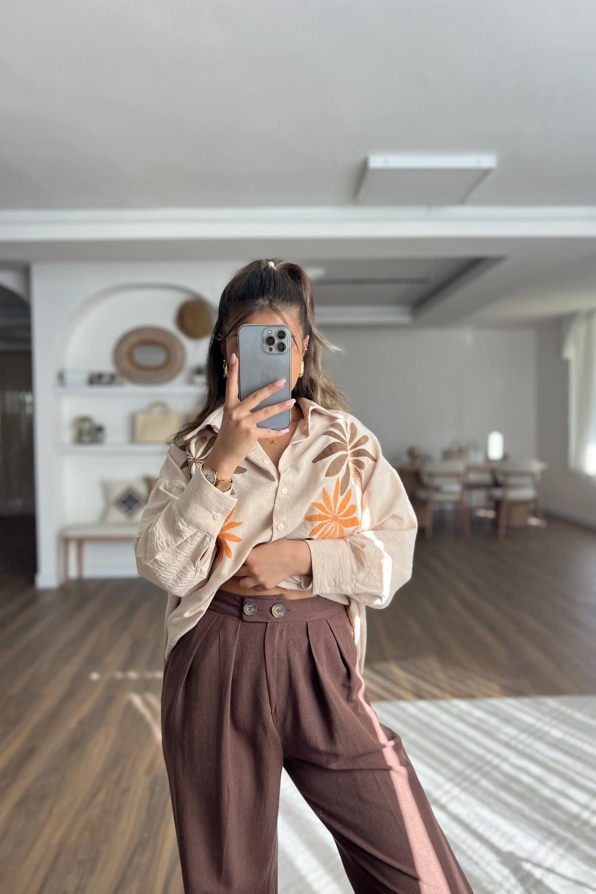 VİSKON KETEN PALAZZO PANTOLON – KAHVE