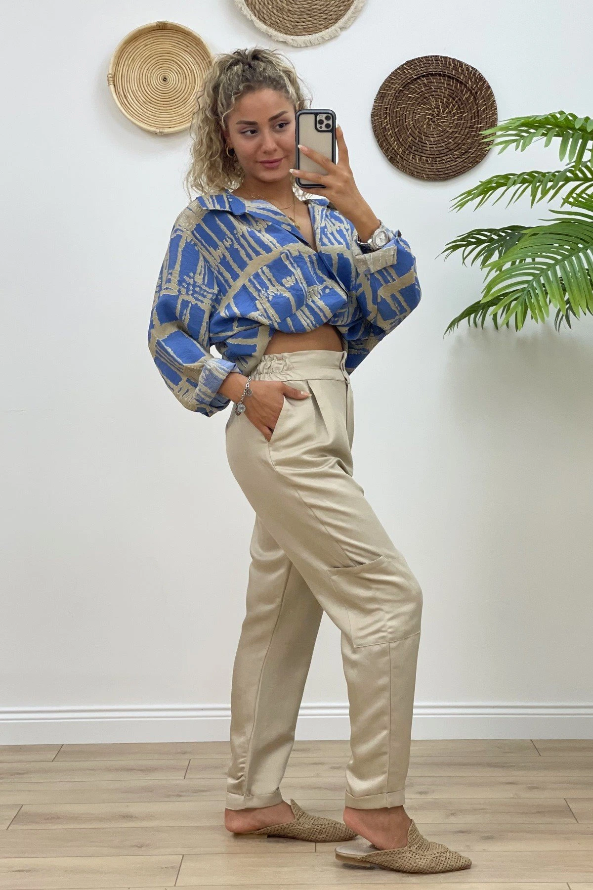 CEPLİ VİSKON PALAZZO PANTOLON - KREM