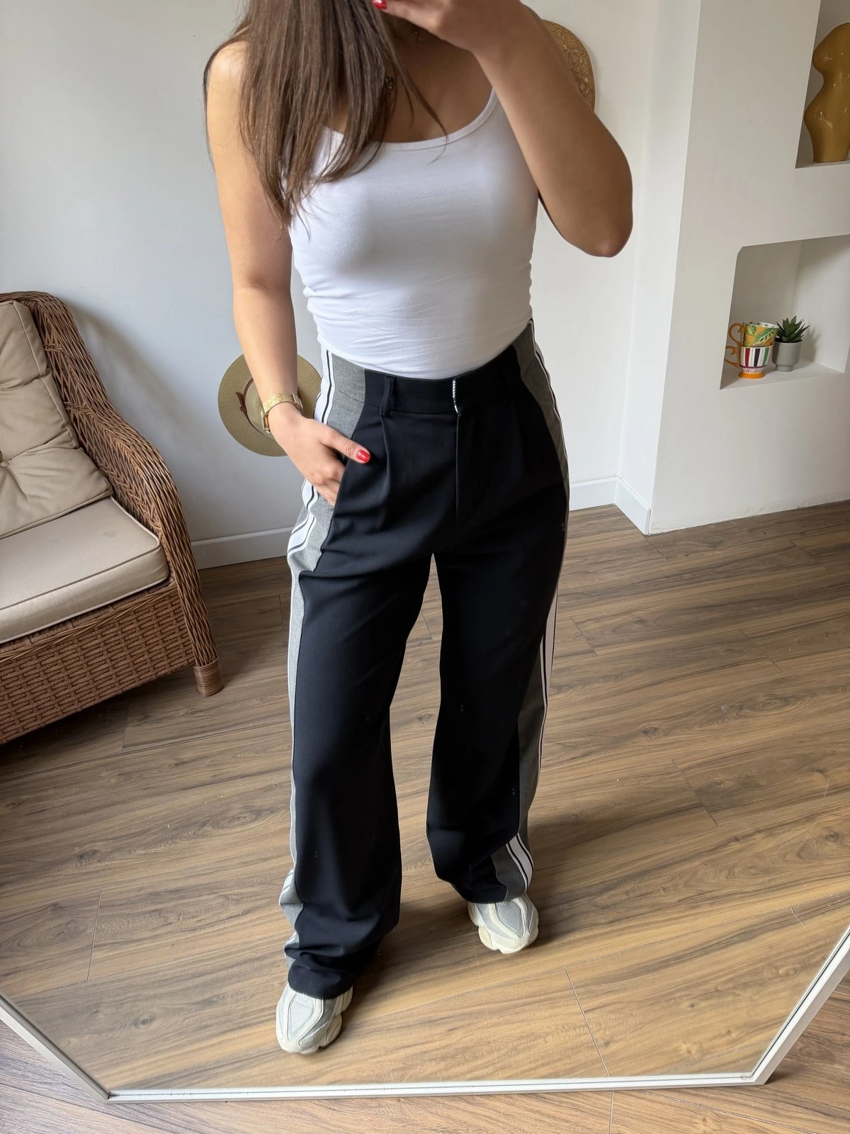 YAN ÇİFT ŞERİT TEK PİLE YÜKSEK BEL LİKRALI PANTOLON – LACİVERT