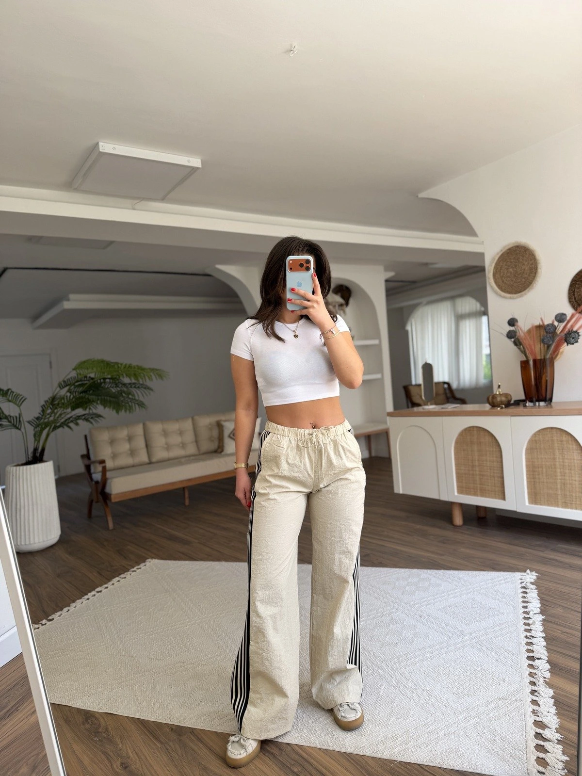 YAN ŞERİT DOKUMA BEL LASTİK PARAŞÜT PANTOLON – BEJ