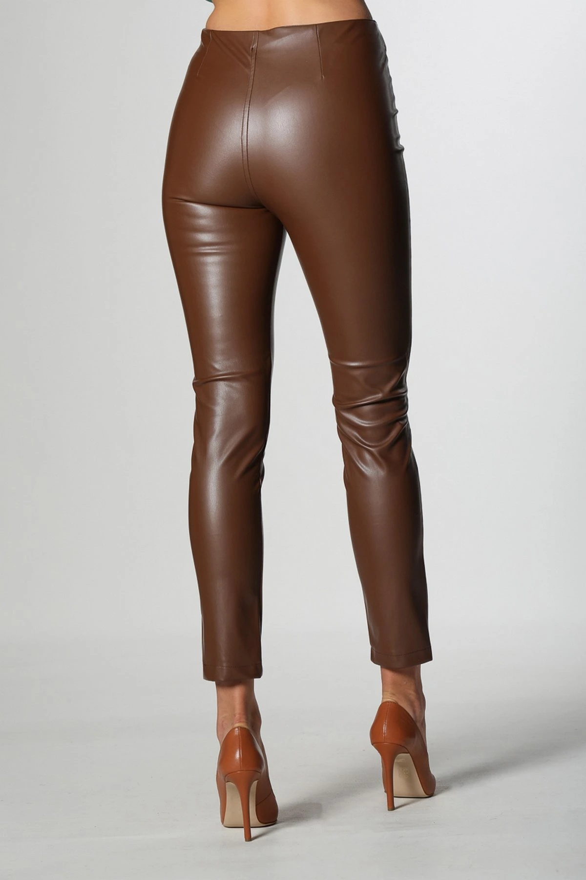 YANDAN FERMUARLI DERİ TAYT PANTOLON – KAHVE