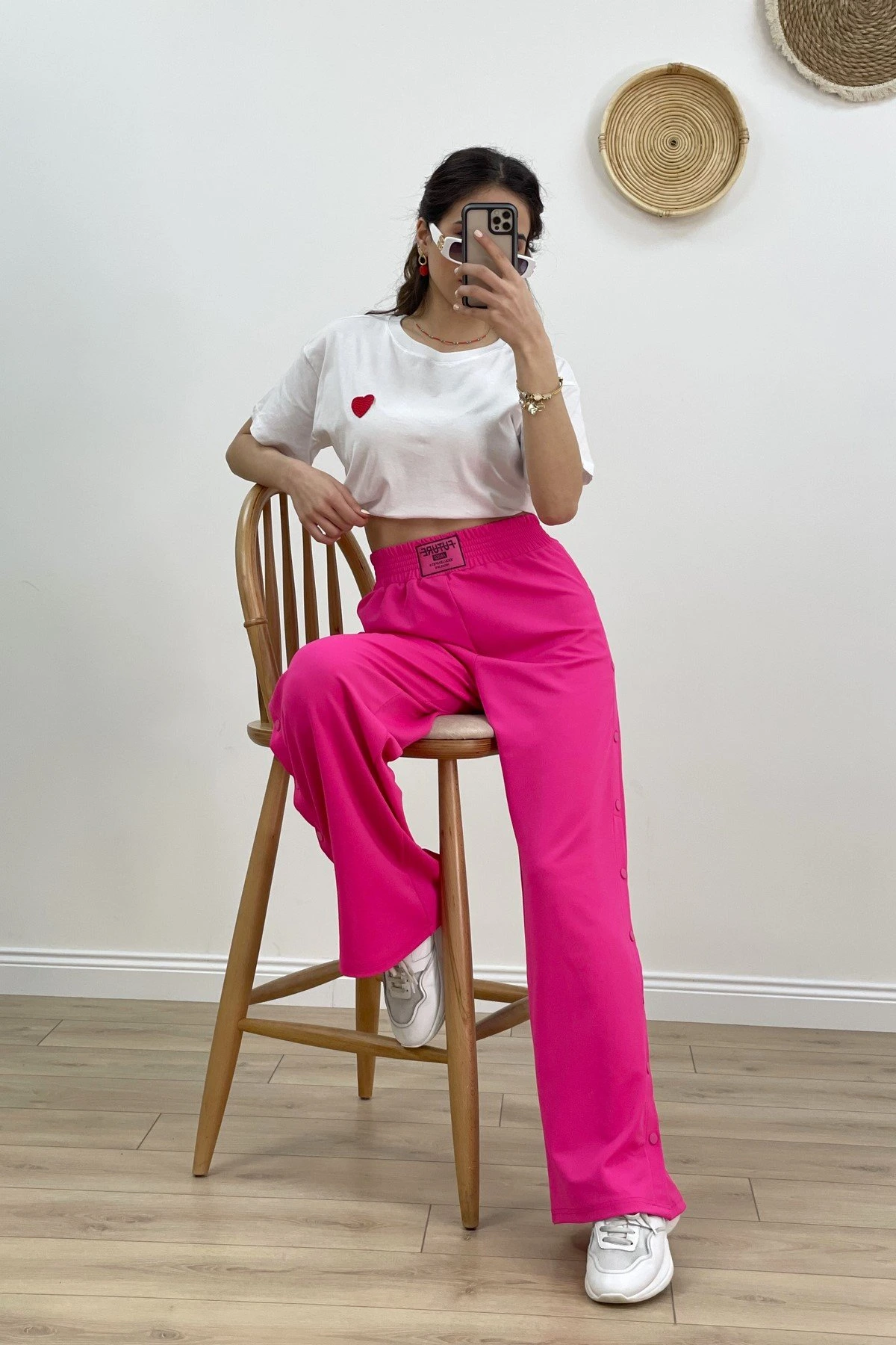 YANLARI ÇITÇITLI BEL LASTİKLİ PANTOLON – FUŞYA