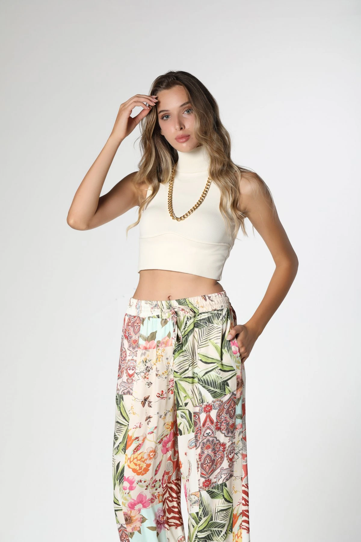 YAPRAK DESEN SATEN PANTOLON – RENKLİ COLOR-12
