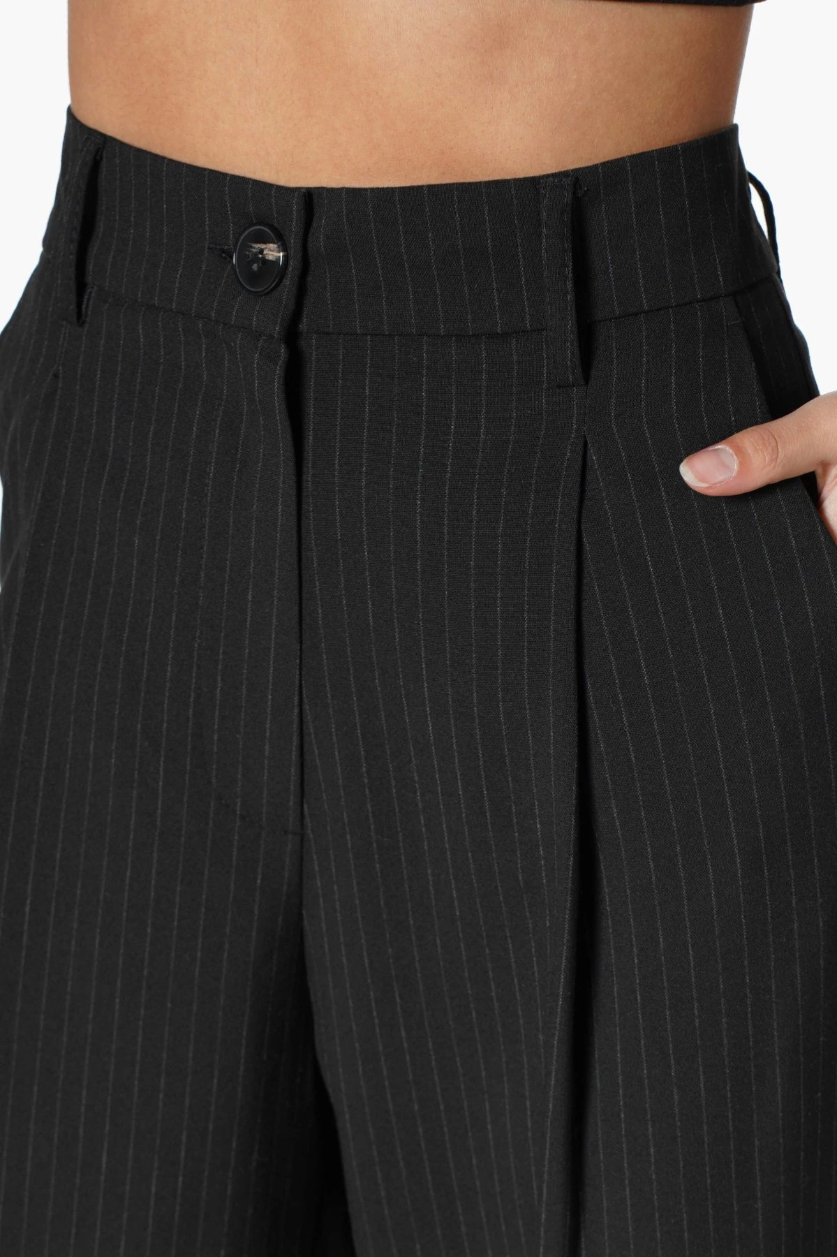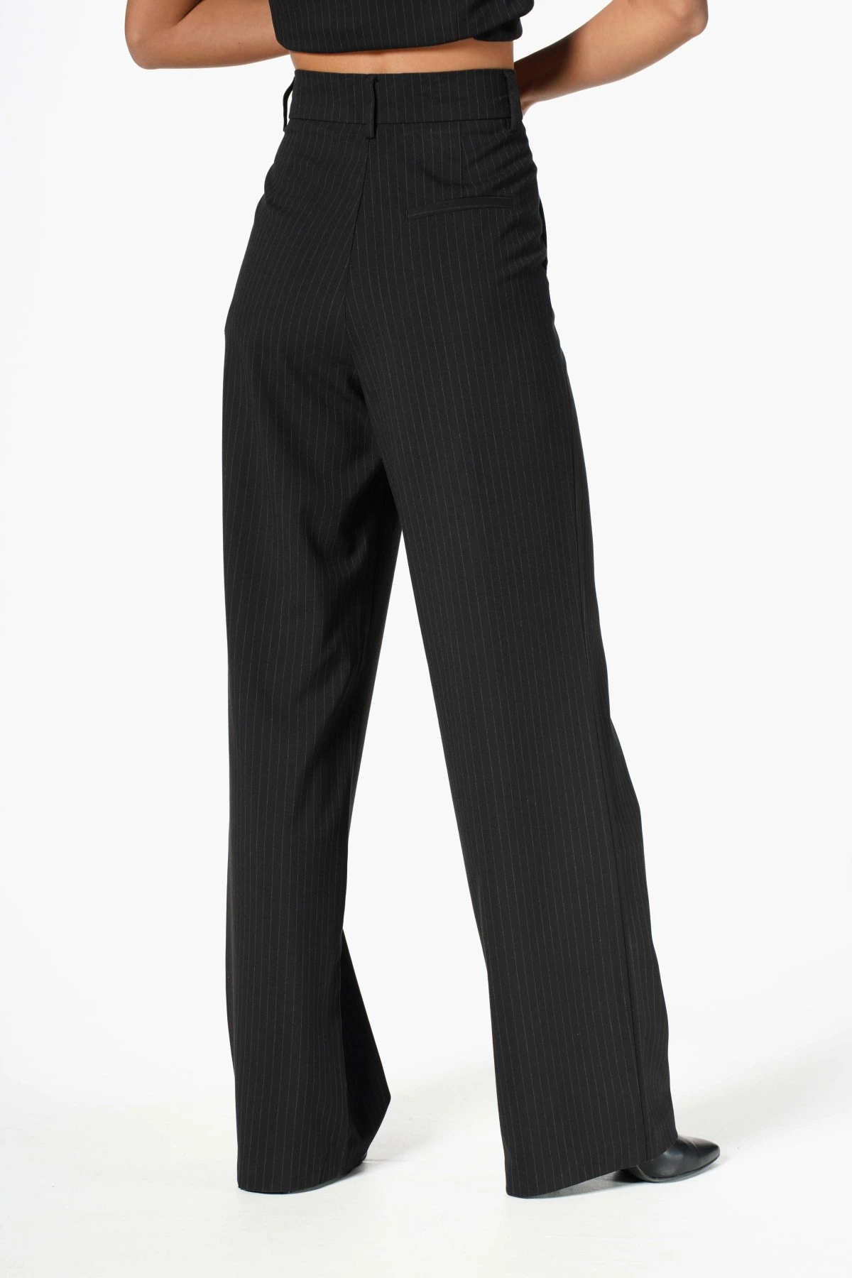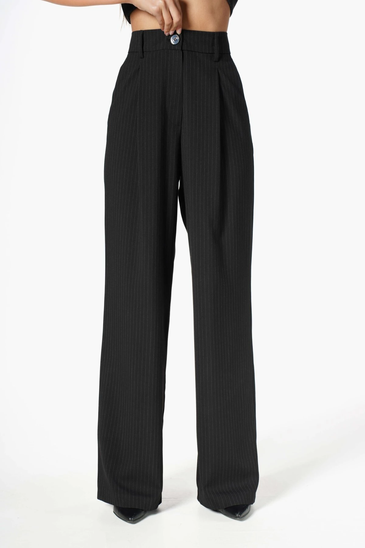 YÜKSEK BEL TEK PİLE ÇİZGİLİ UZUN PANTOLON – SİYAH