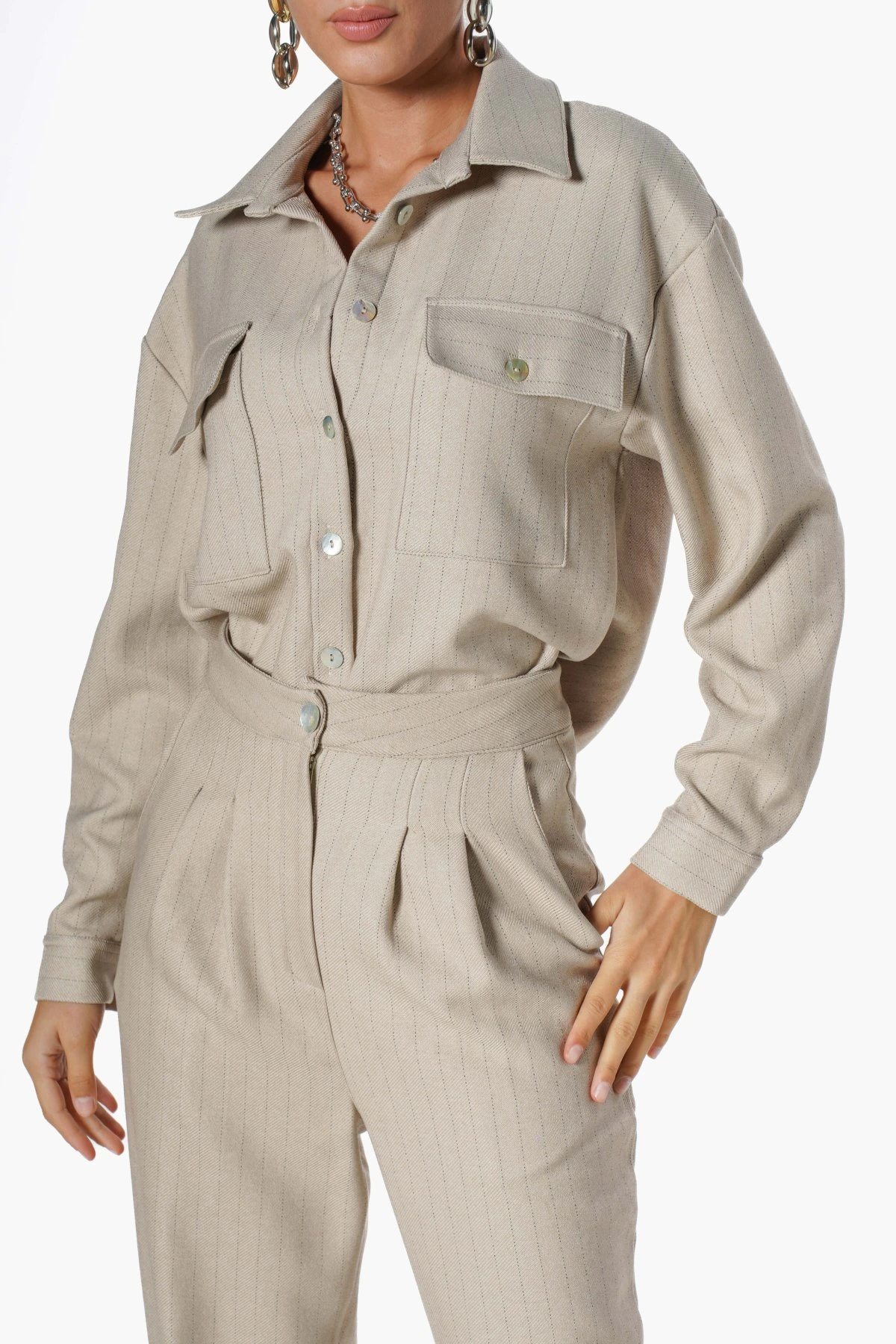 YÜN EFEKT ÇİFT PİLE CEPLİ PANTOLON - GRİ