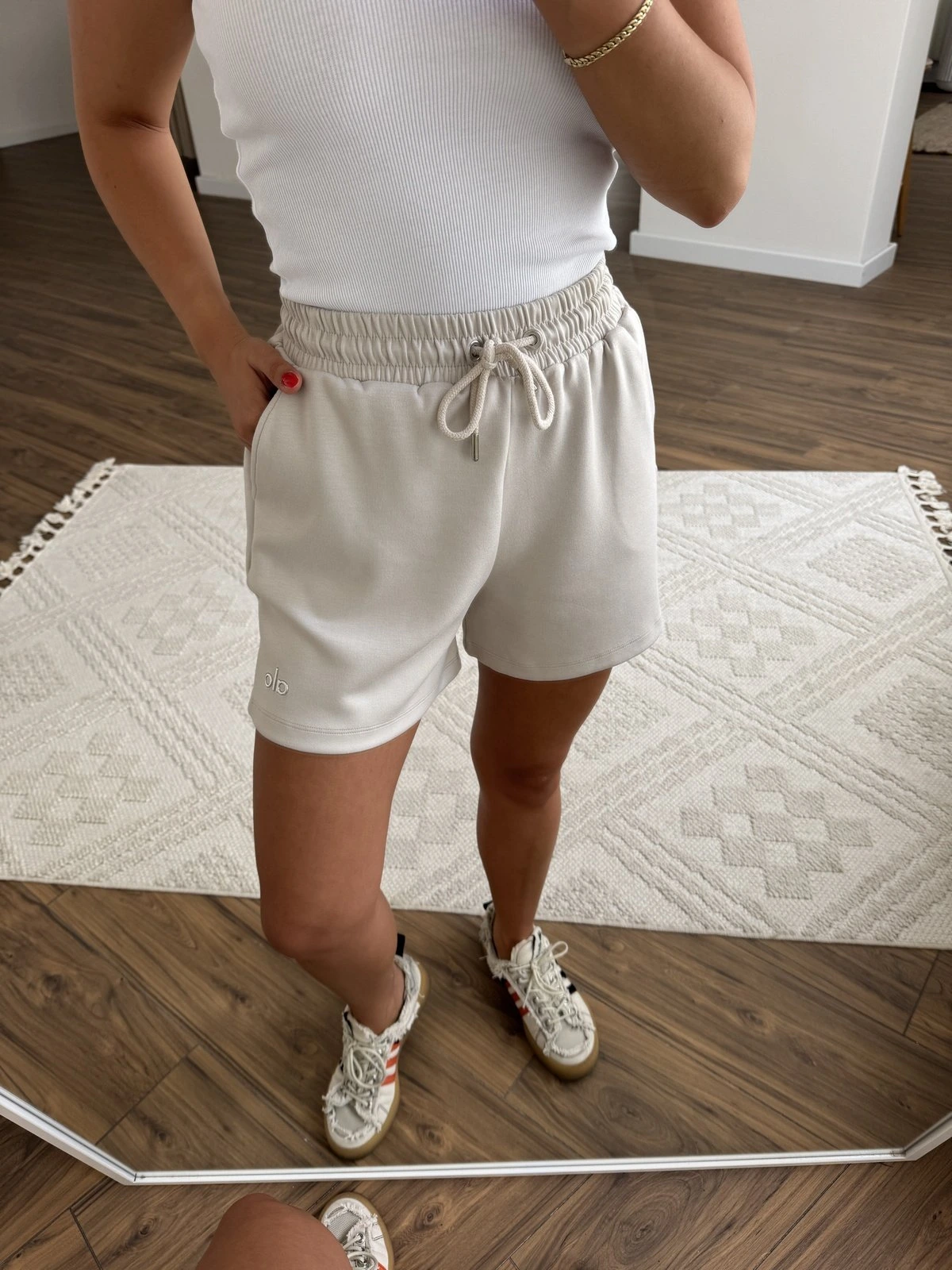 ALO YAZILI CEPLİ LİKRALI ŞORT – BEJ