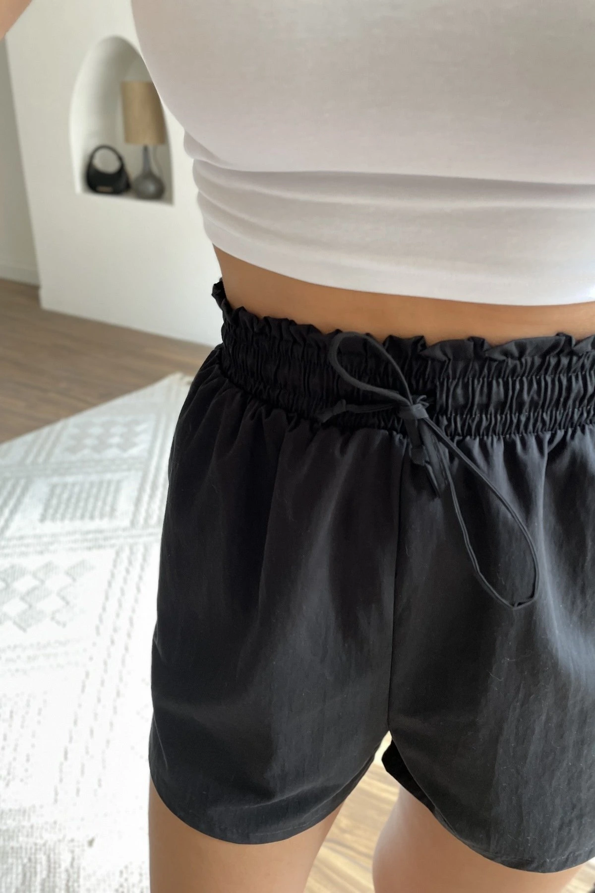 BEL LASTİK CEPLİ VİSKON ŞORT – SİYAH