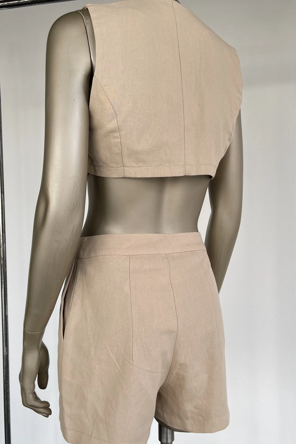 CEPLİ PAMUK KISA ŞORT – BEJ