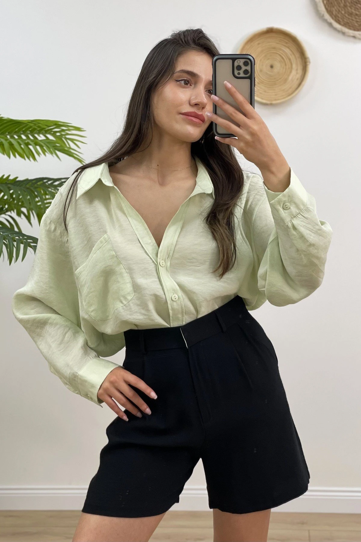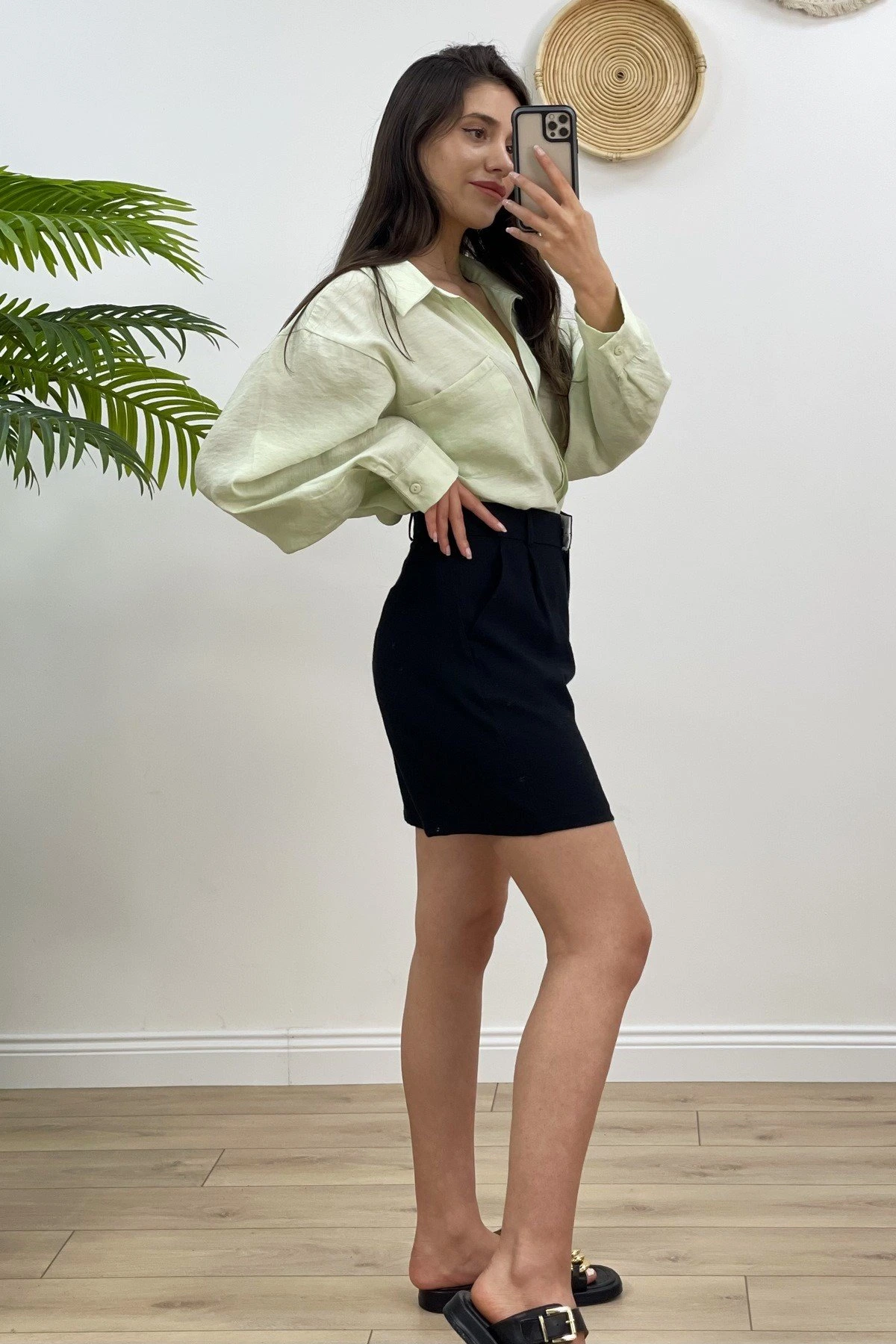 ÖRME DETAY TEK CEP GÖMLEK - SİYAH