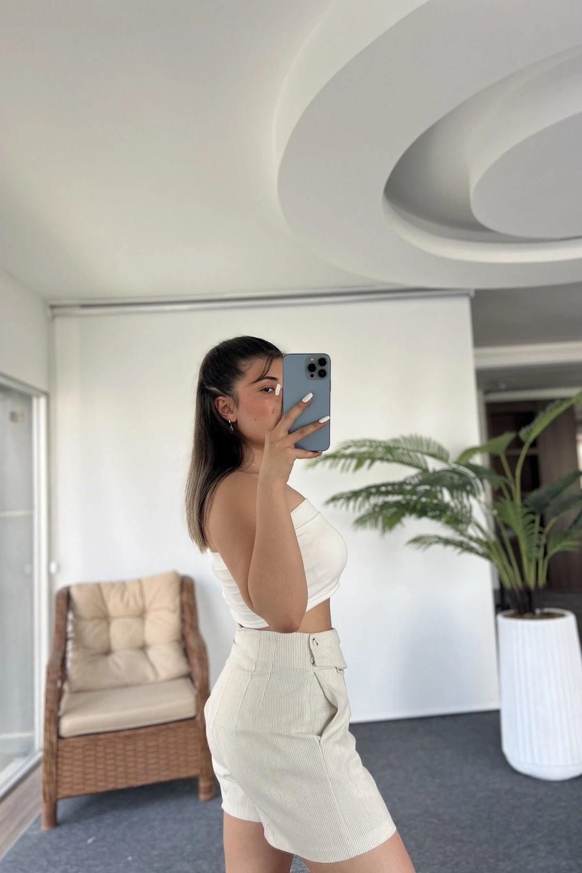 GÖĞÜS KUPLU FİTİLLİ PAMUK CROP BUSTİYER - EKRU
