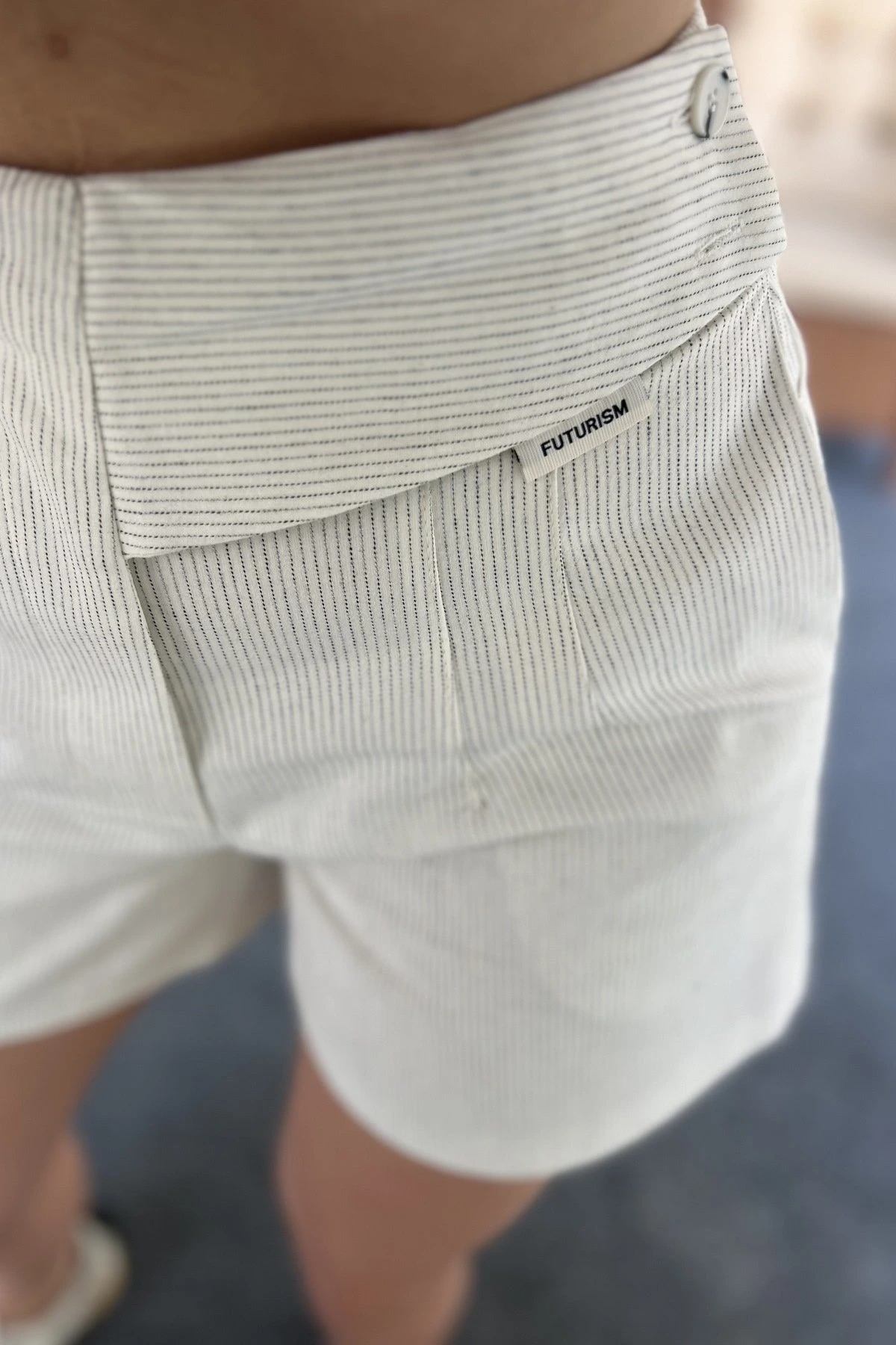 KAPAK KEMER ÇİZGİLİ PAMUK ŞORT – NATUREL