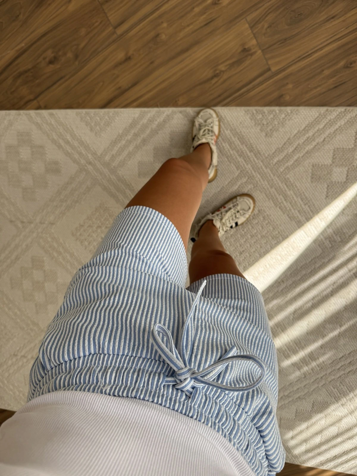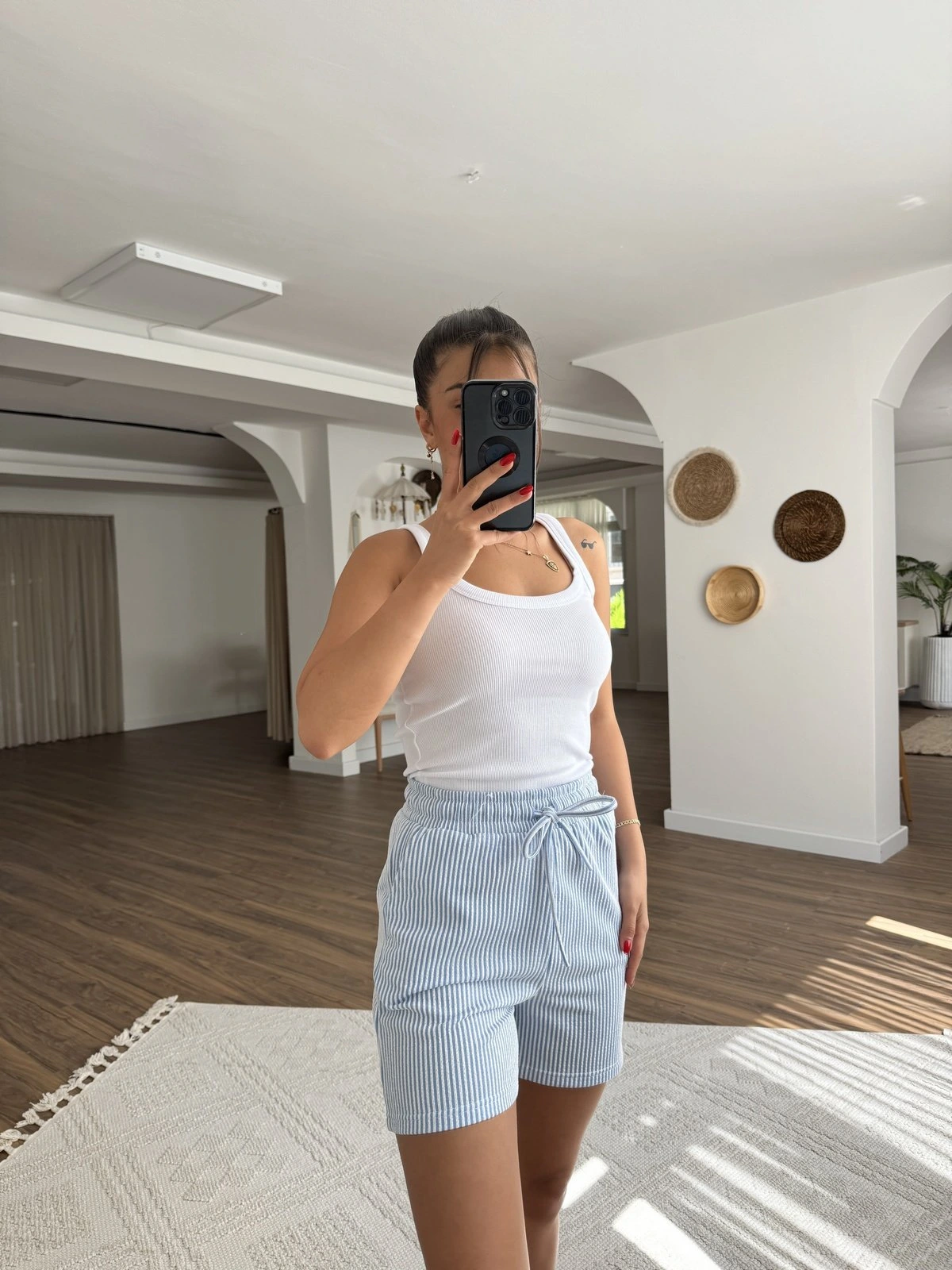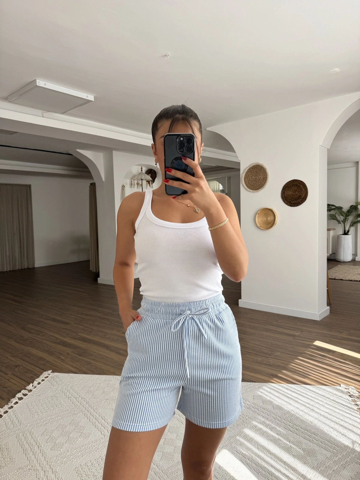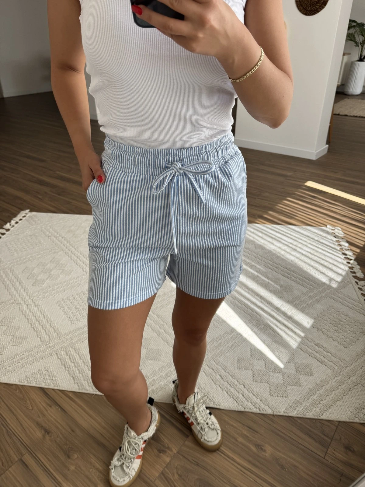 STRADIVARIUS ÇİZGİLİ CEPLİ PAMUK ŞORT – MAVİ