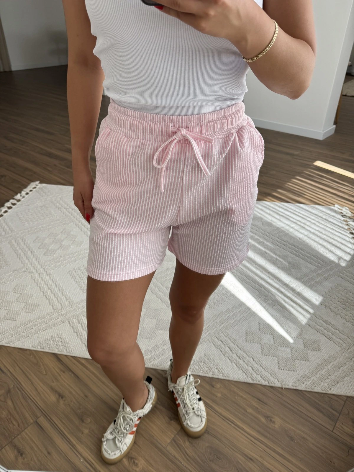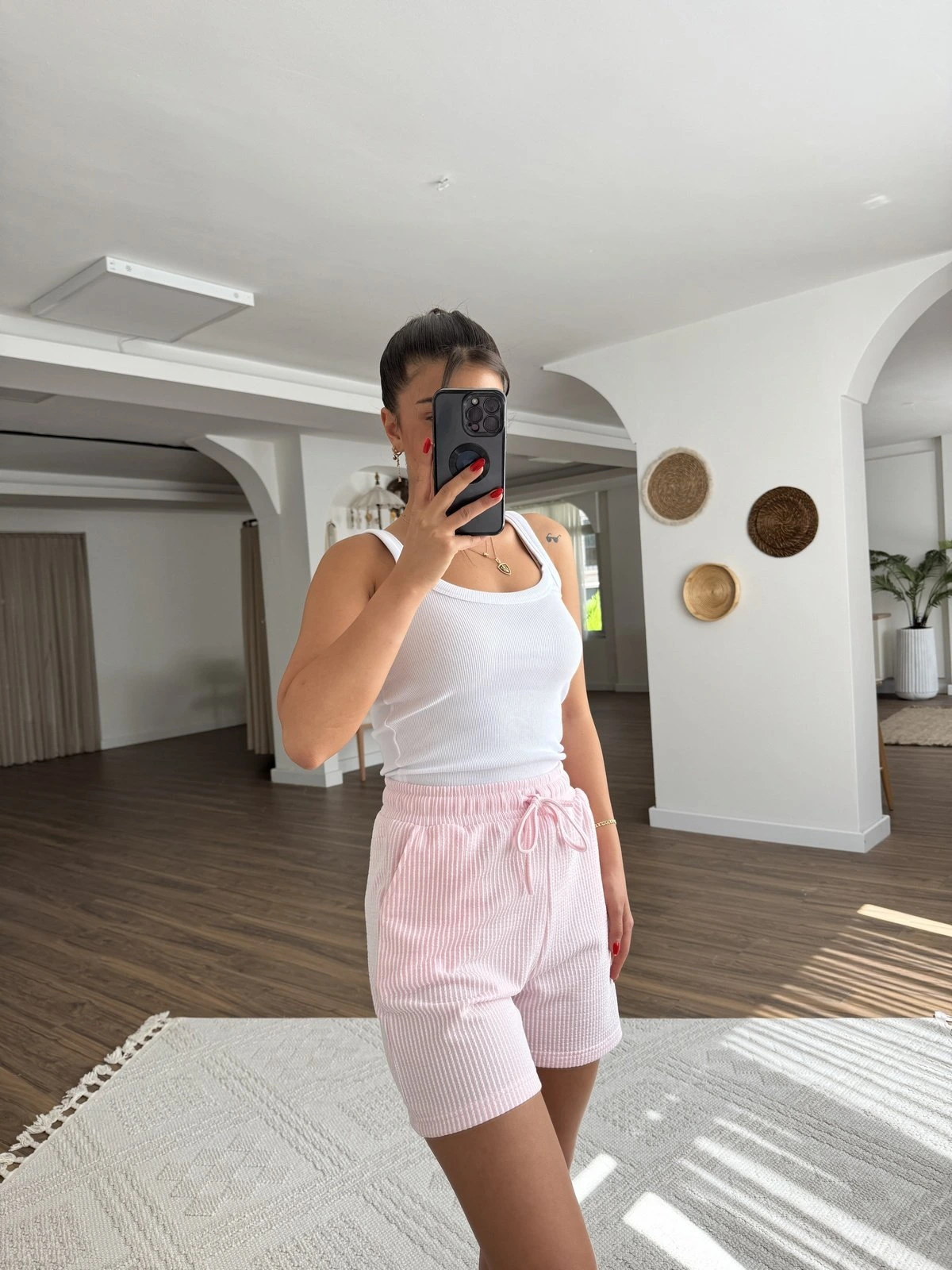 STRADIVARIUS ÇİZGİLİ CEPLİ PAMUK ŞORT – PEMBE