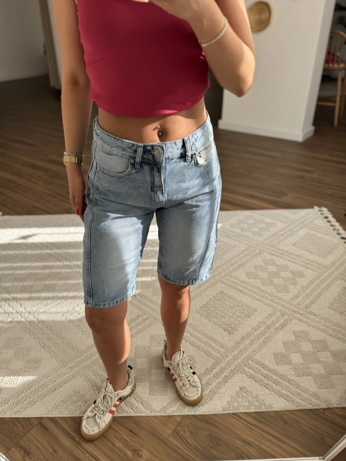 YANLARI DİKİŞ DETAY UZUN ŞEHİR BOY JEAN ŞORT – MAVİ
