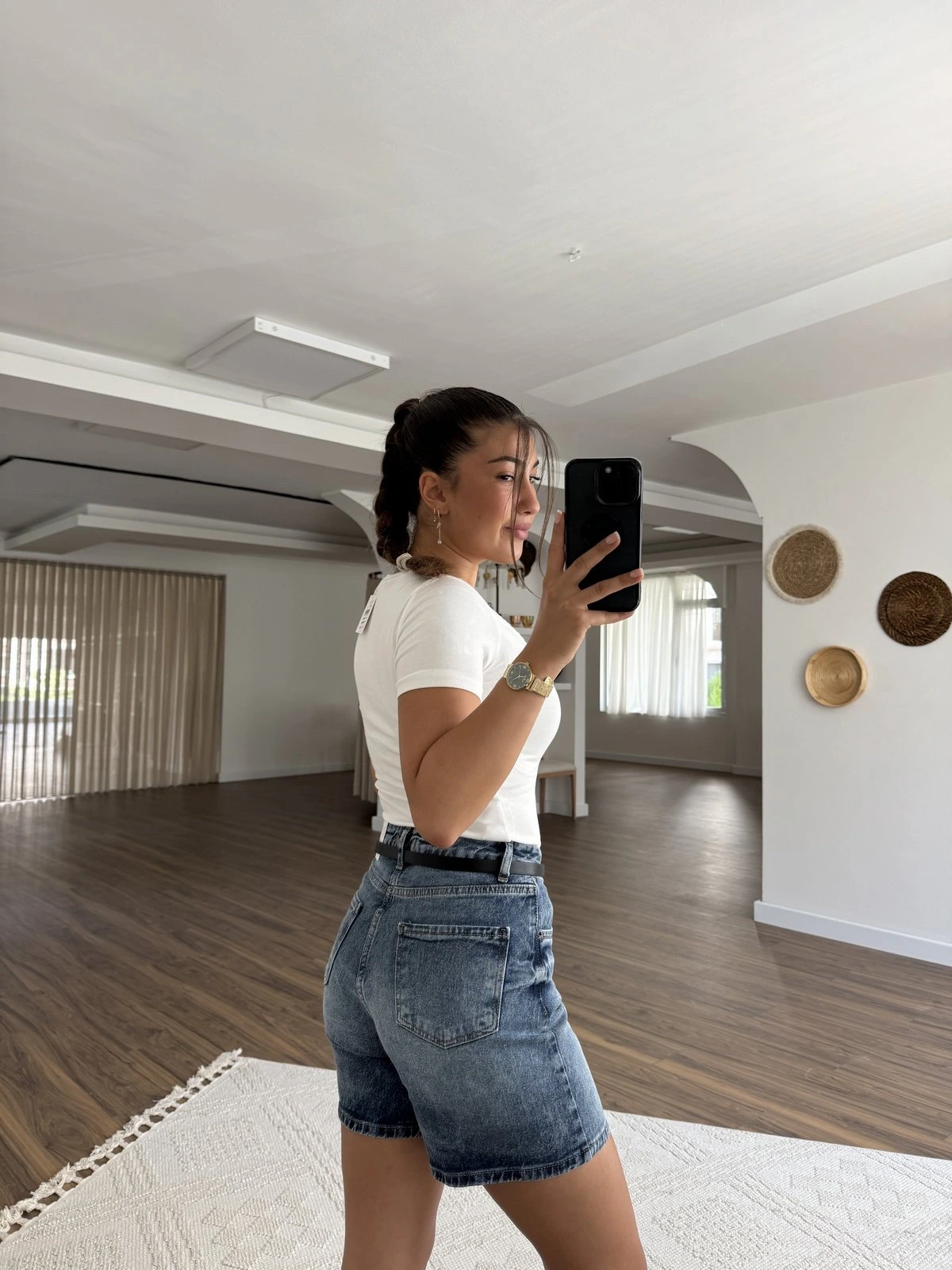 ZR MARKA YÜKSEK BEL JEAN ŞORT – MAVİ