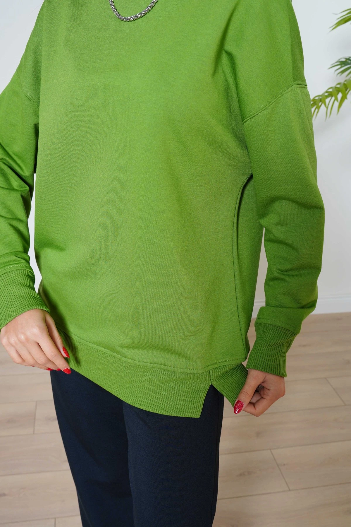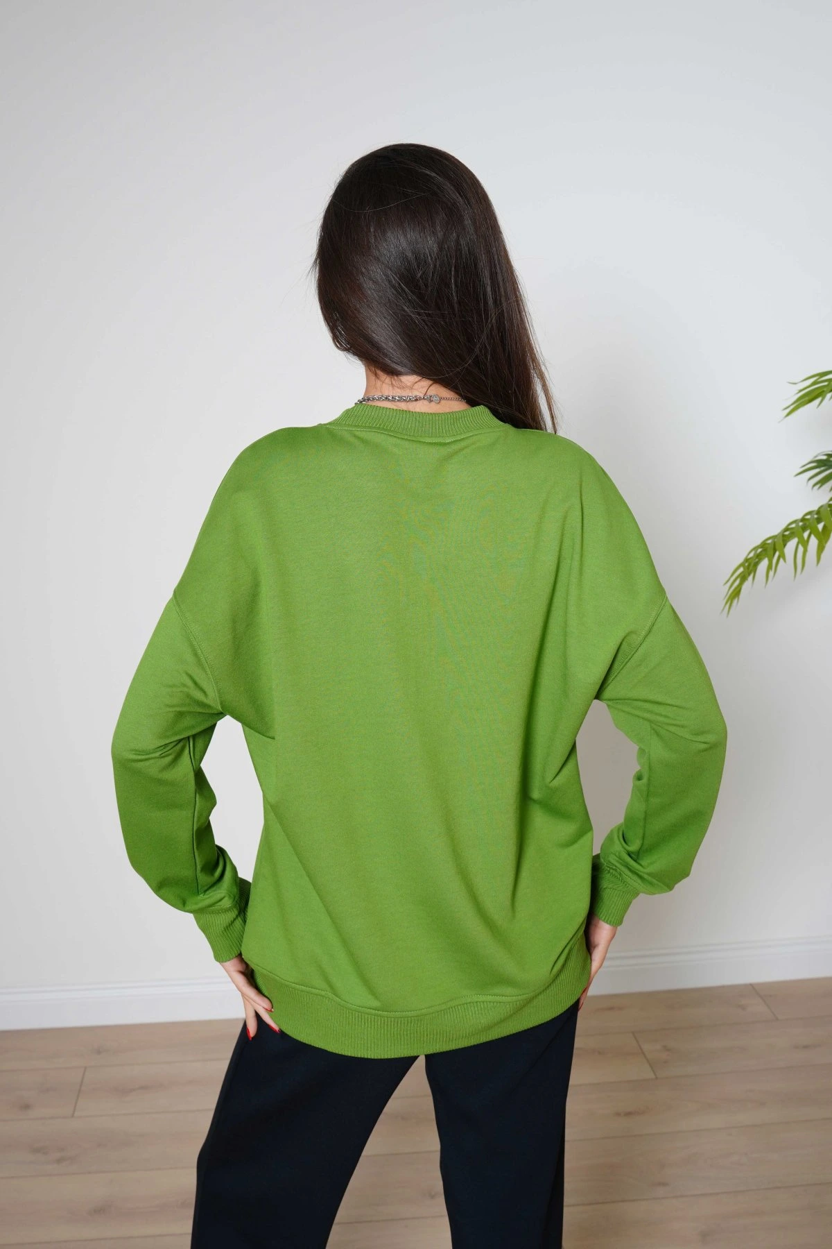 BASİC BİSİKLET YAKA PAMUK SWEAT – ÇİMEN YEŞİLİ
