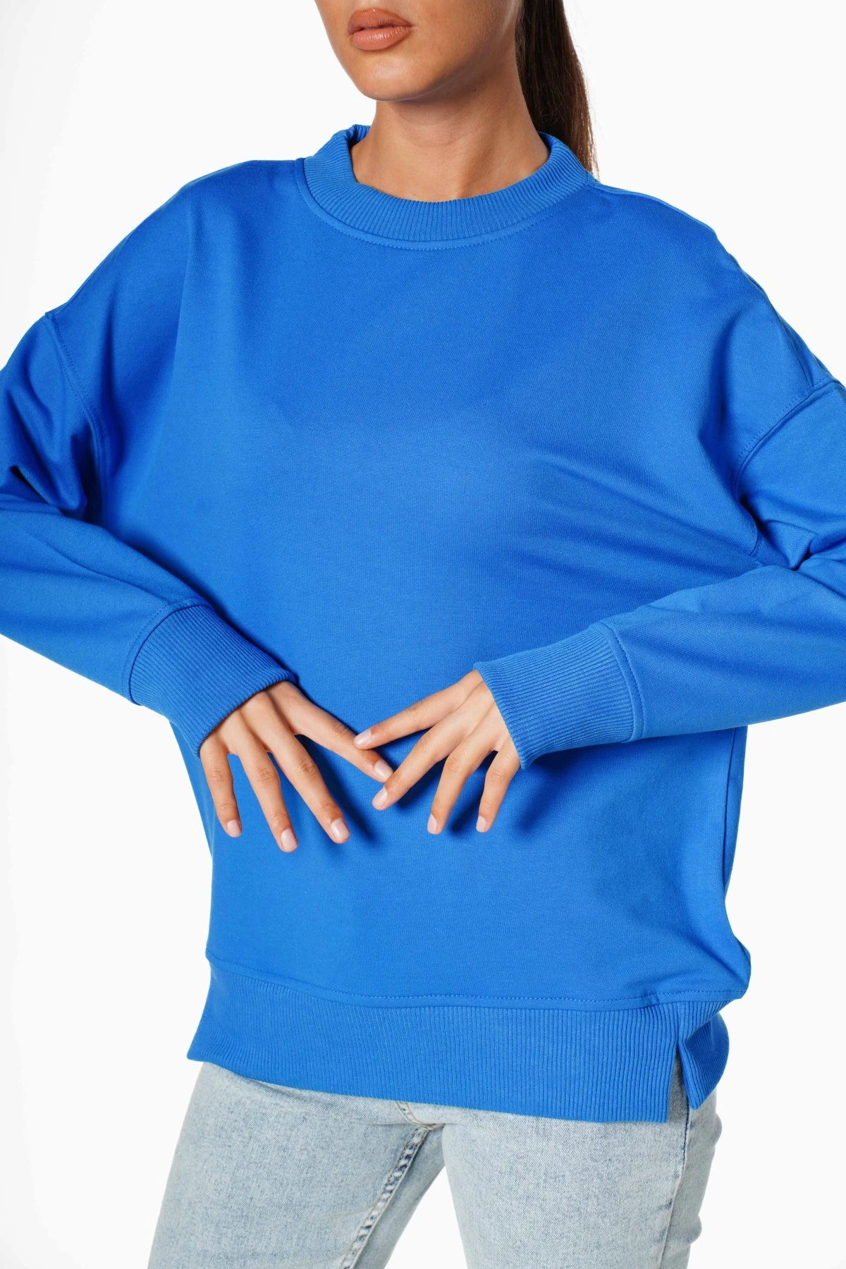 BASİC BİSİKLET YAKA PAMUK SWEAT – SAKS