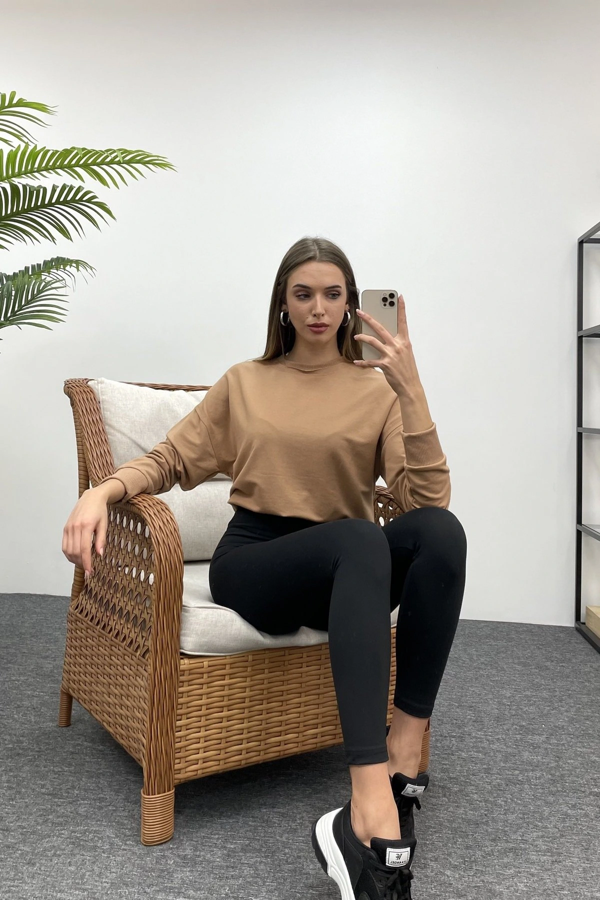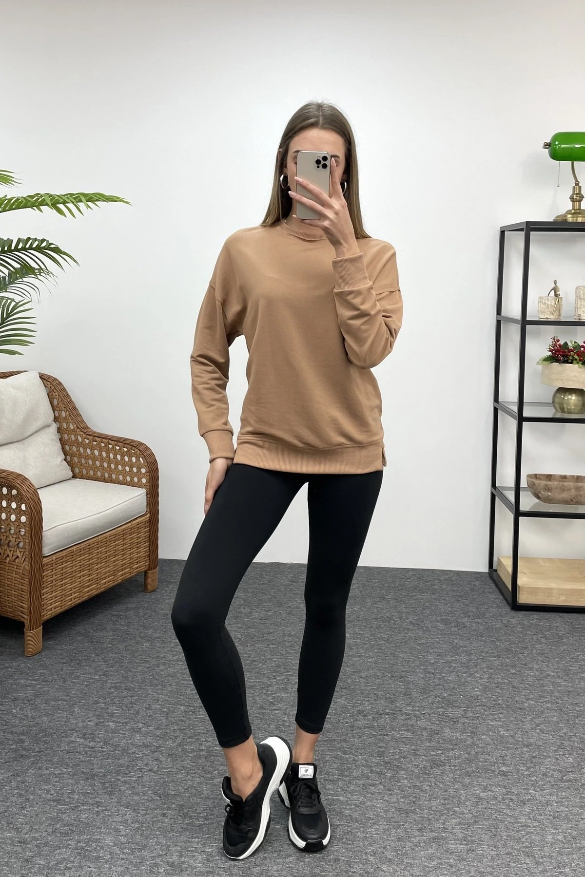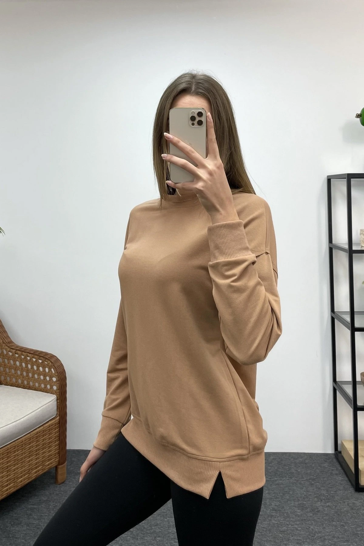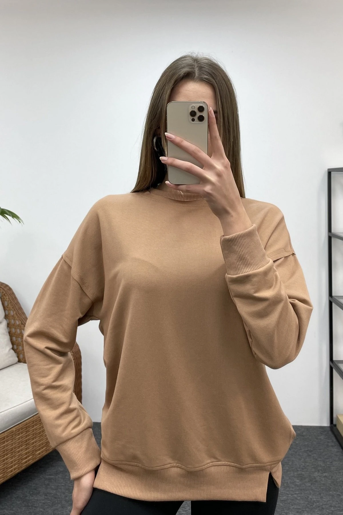 BİSİKLET YAKA SWEAT – KARAMEL