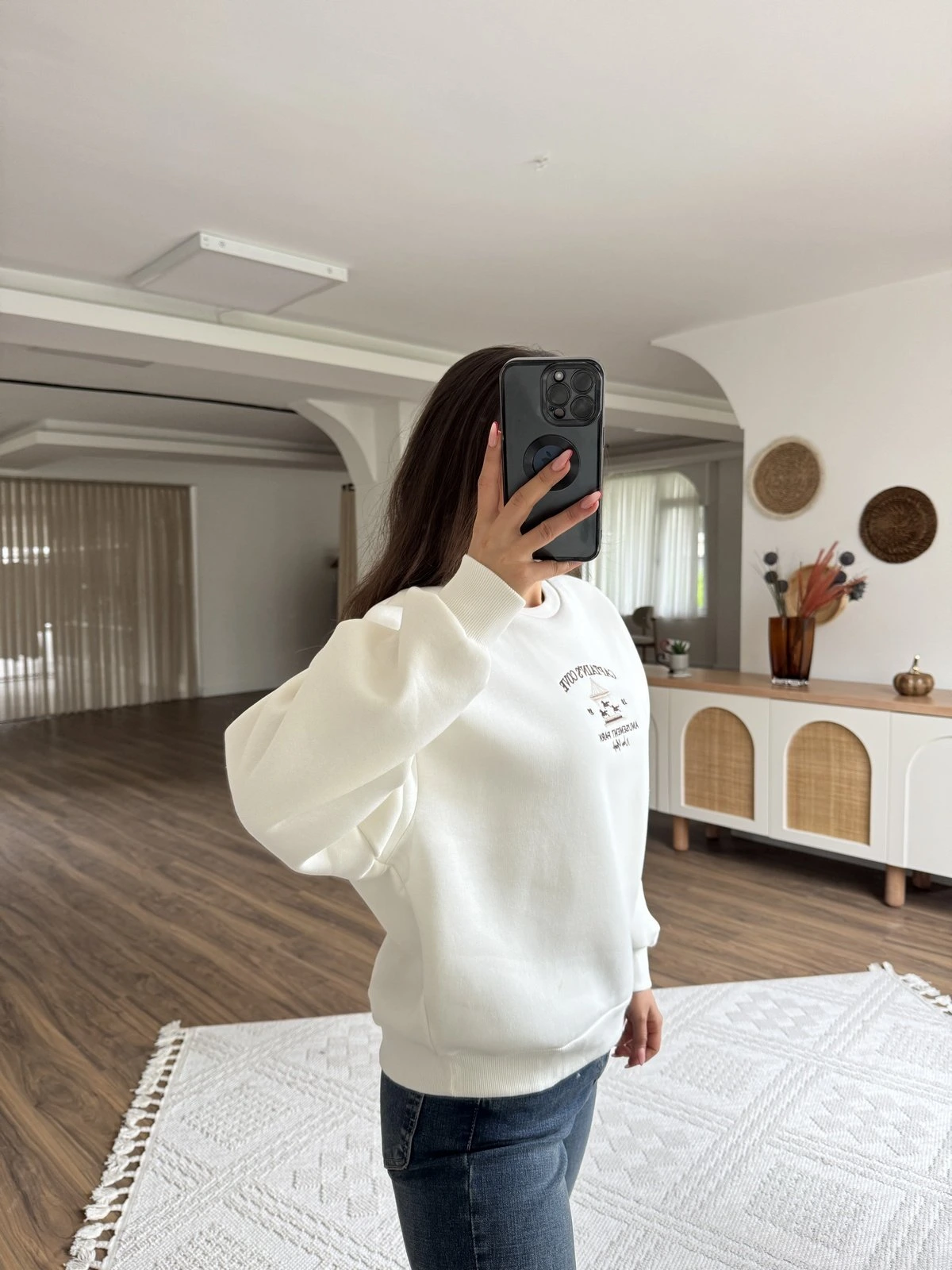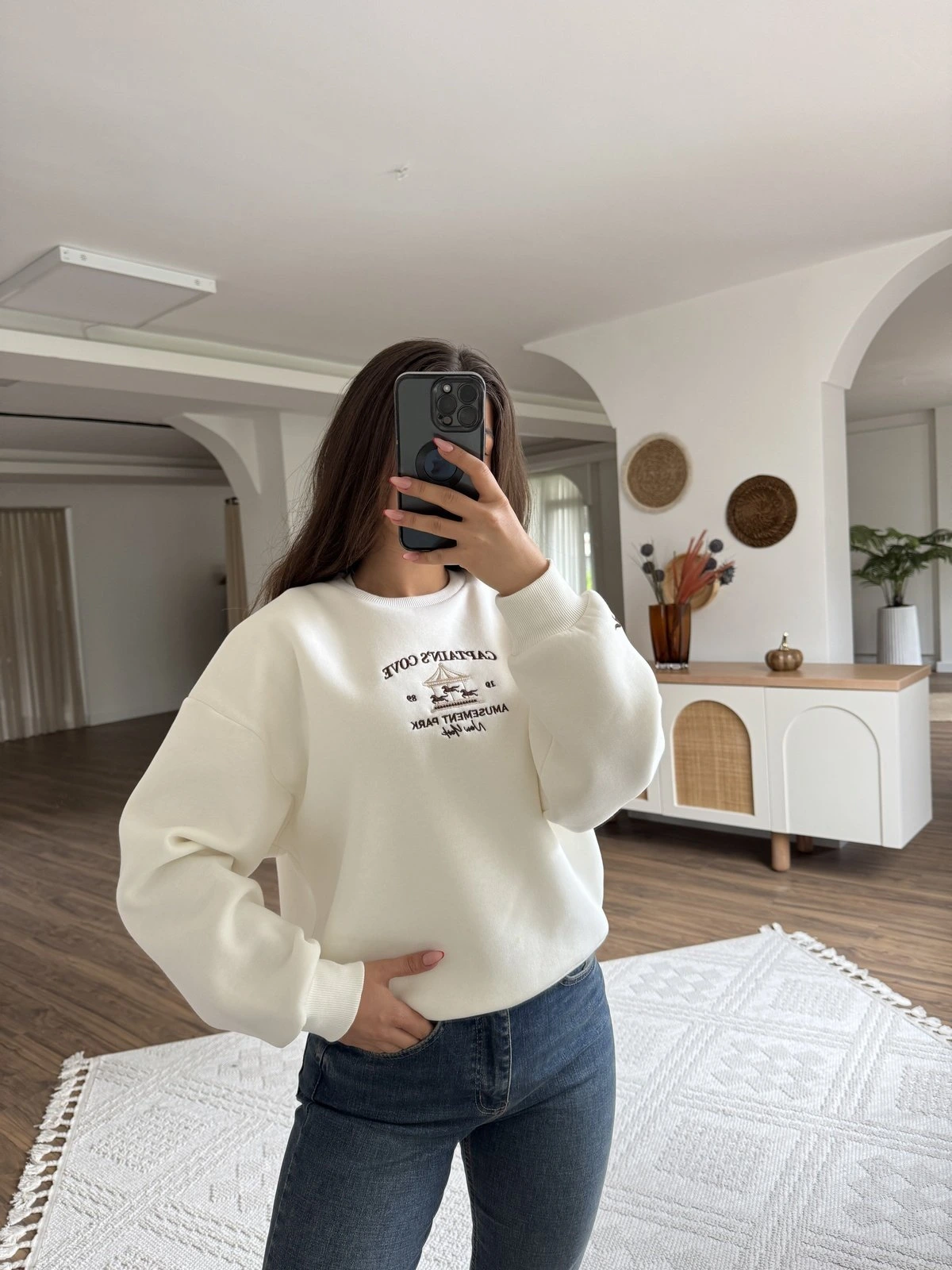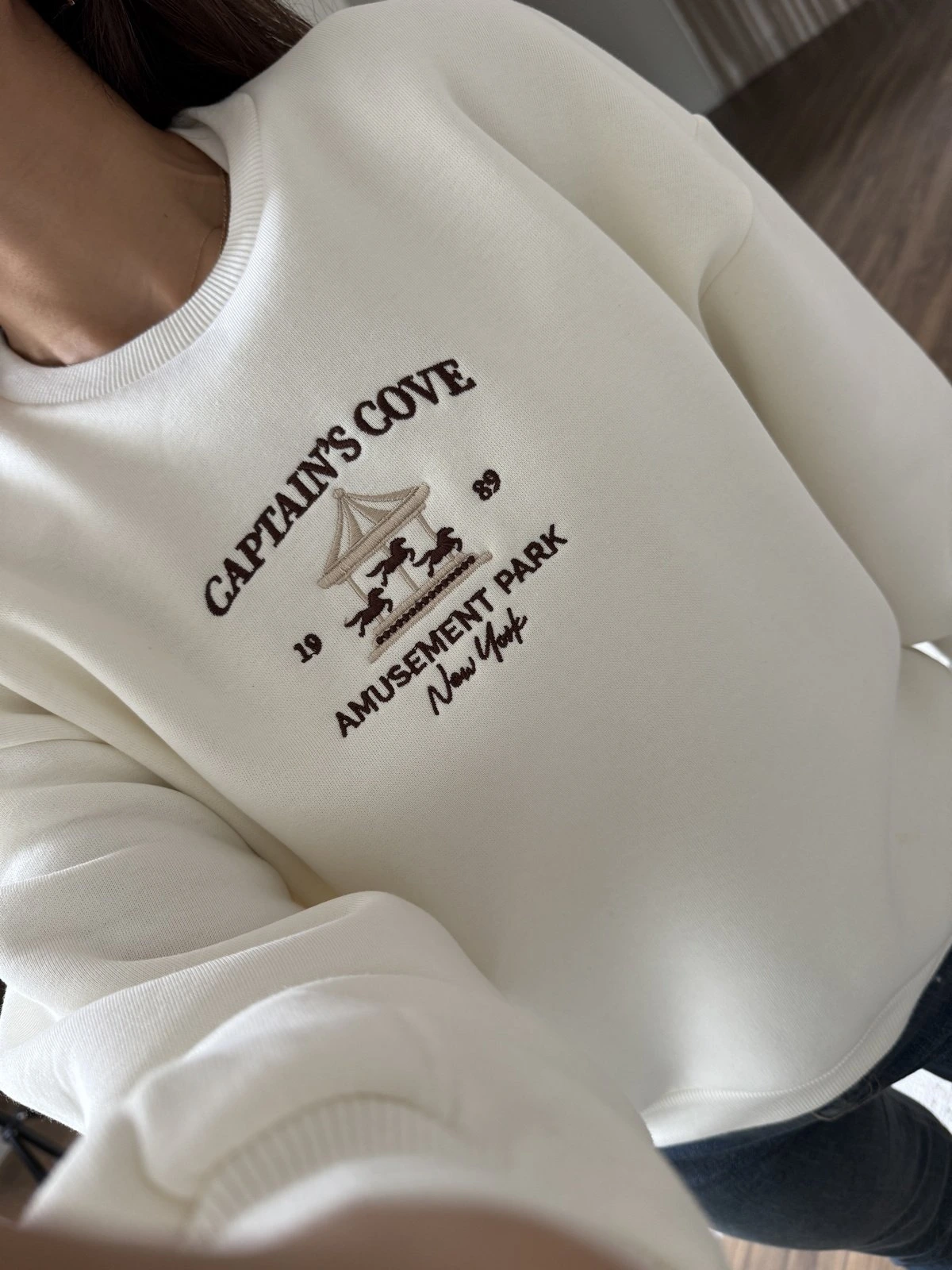 CAPTAİNS YAZI NAKIŞ ŞARDONLU PAMUK SWEAT – EKRU