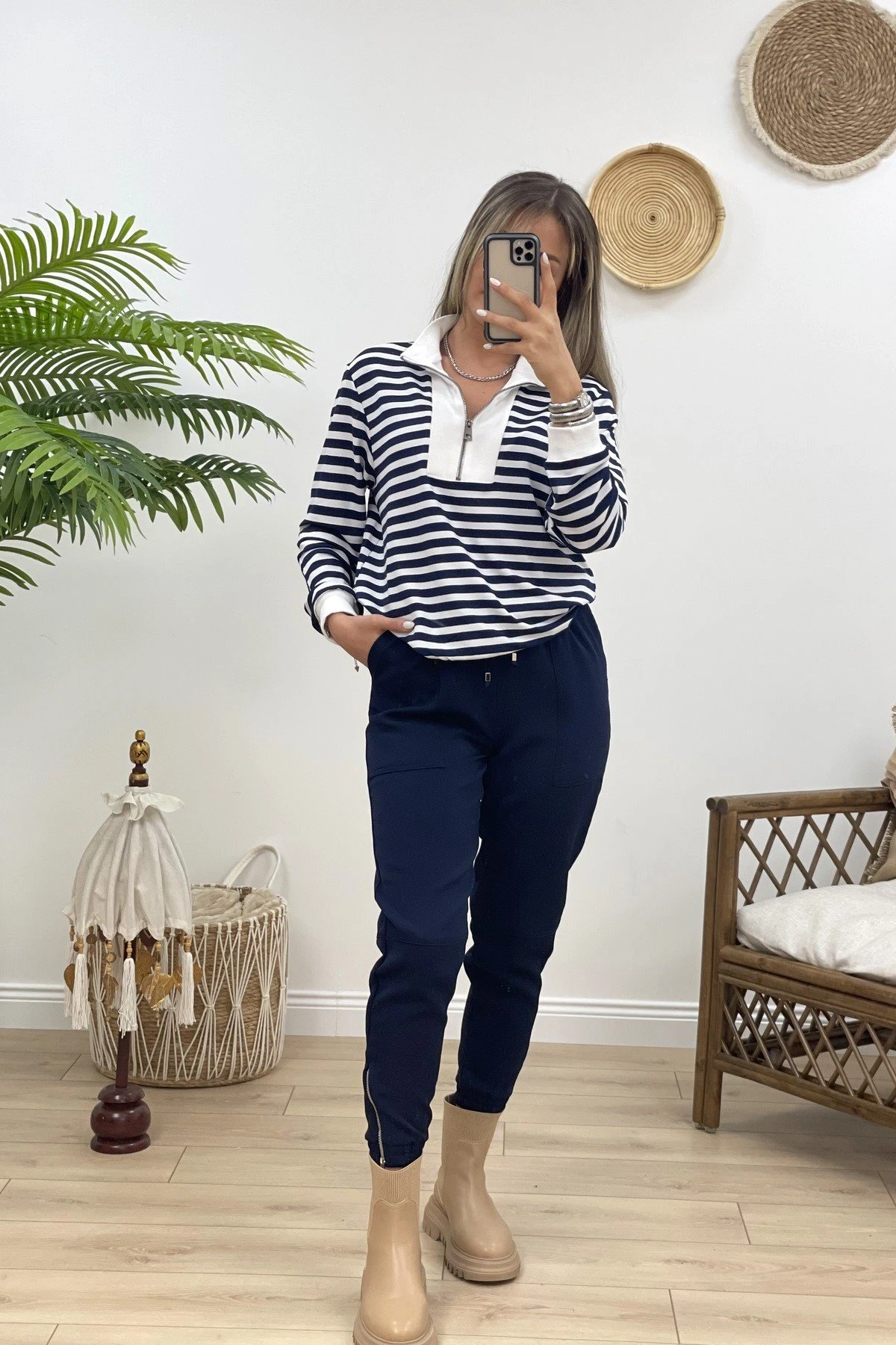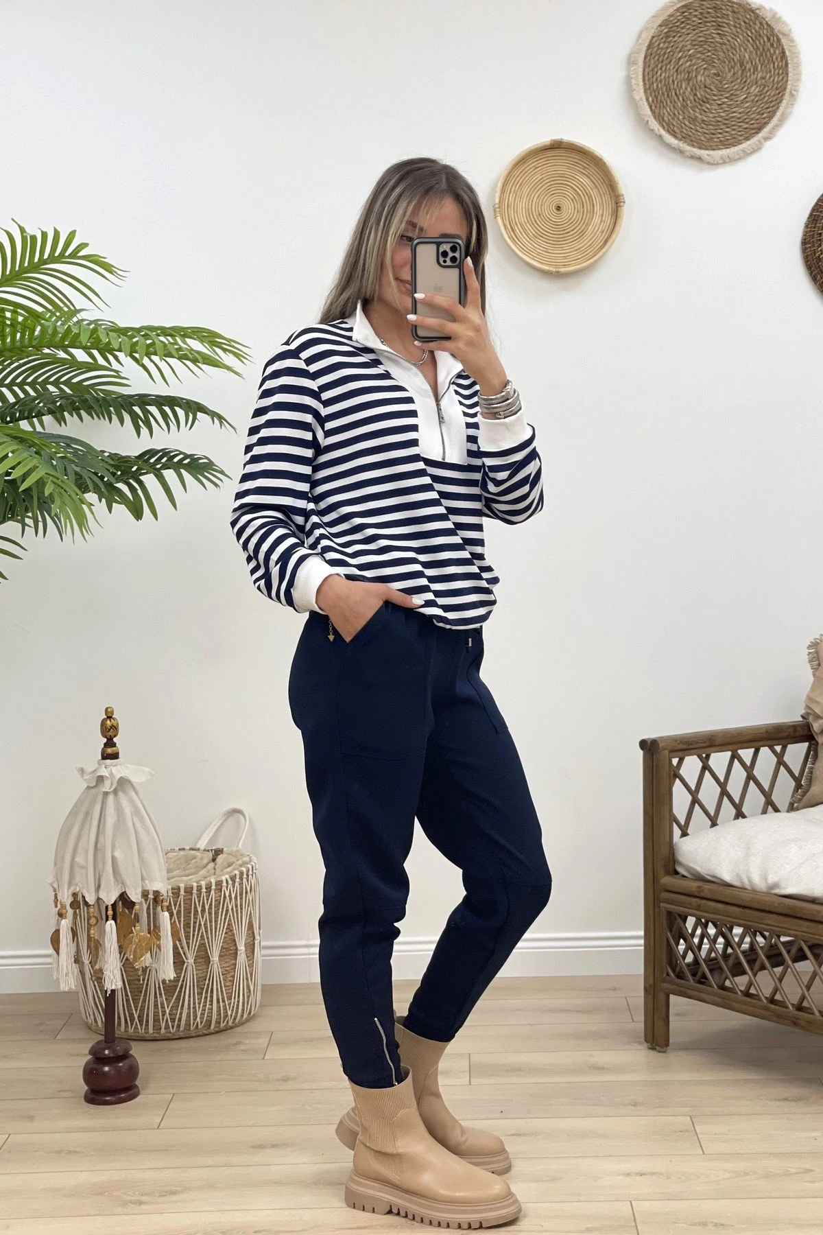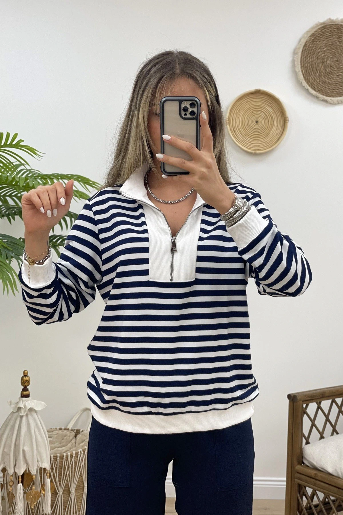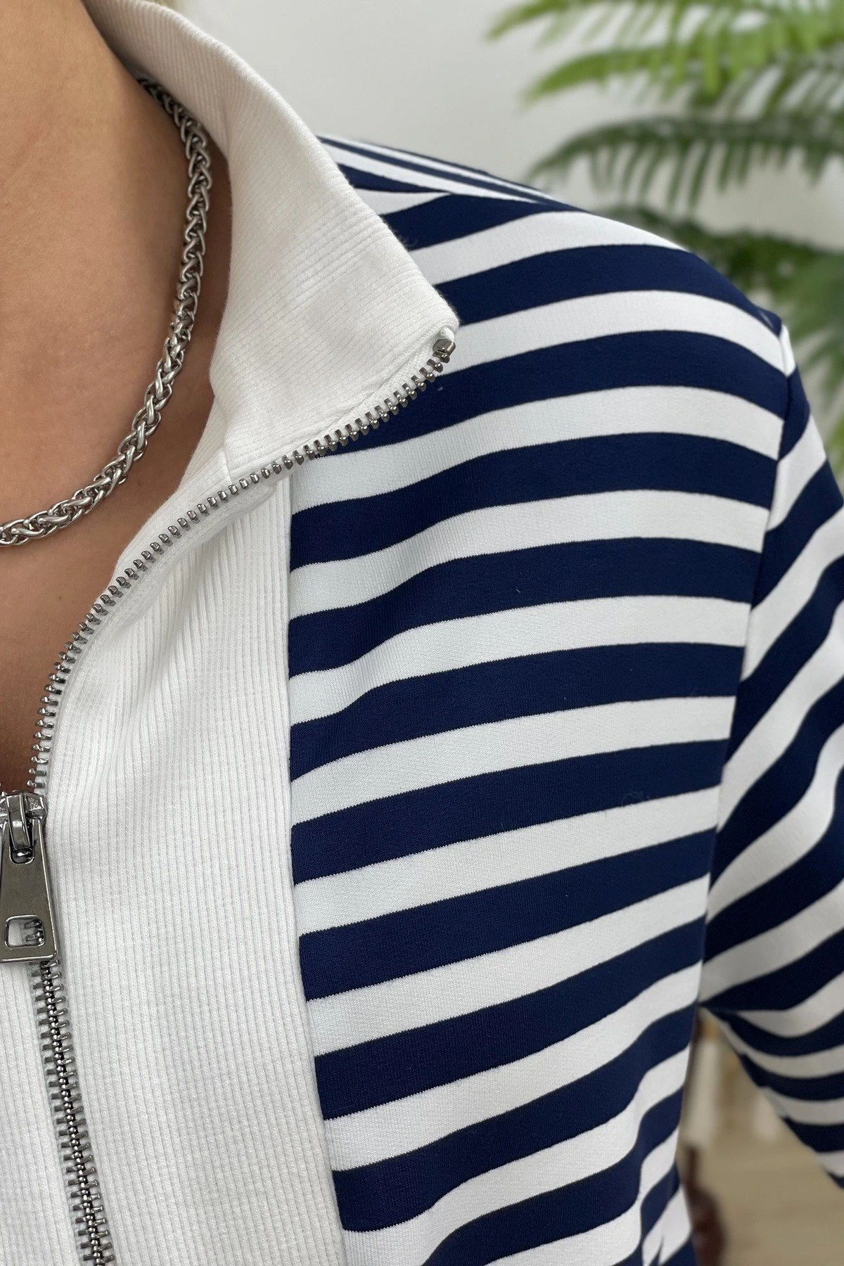 ÇİZGİLİ ÖNÜ FERMUARLI SWEAT – LACİVERT ÇİZGİLİ