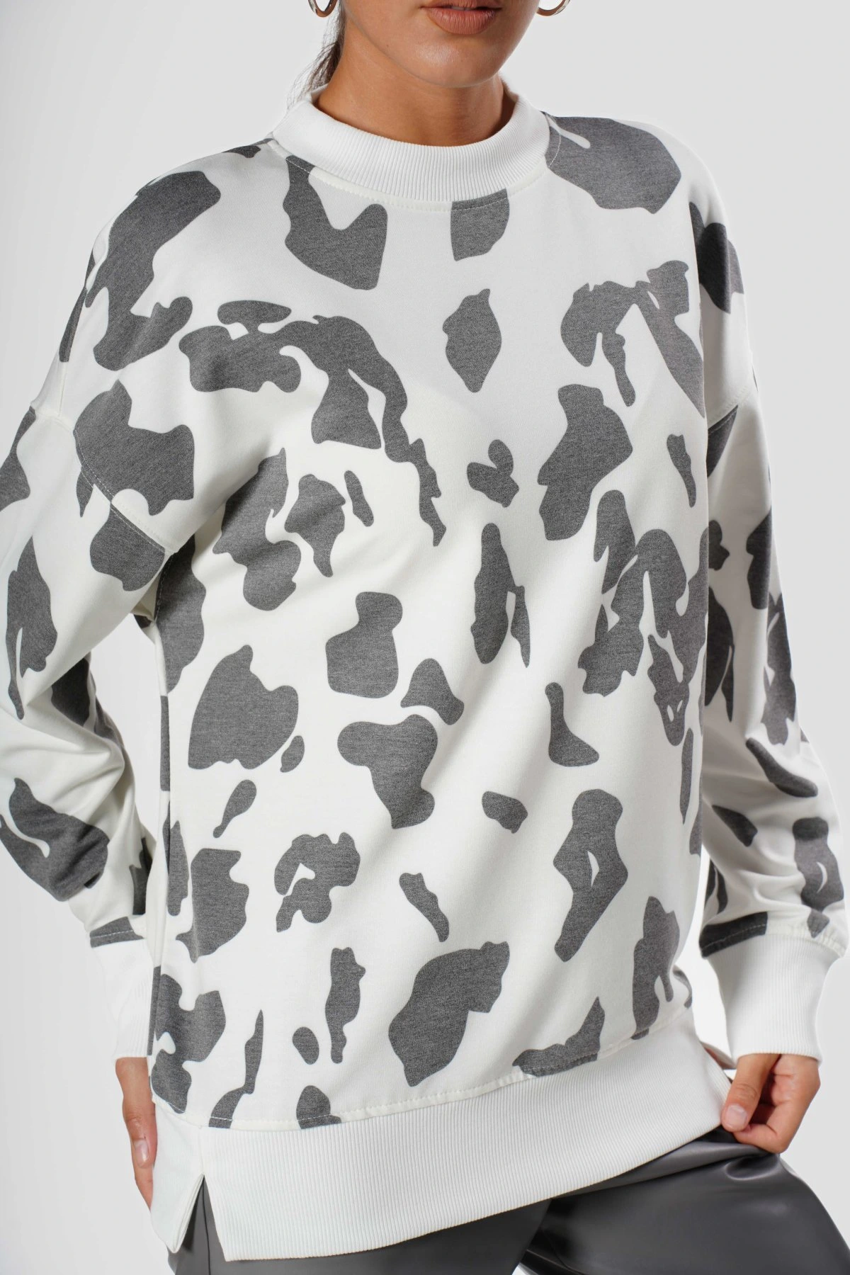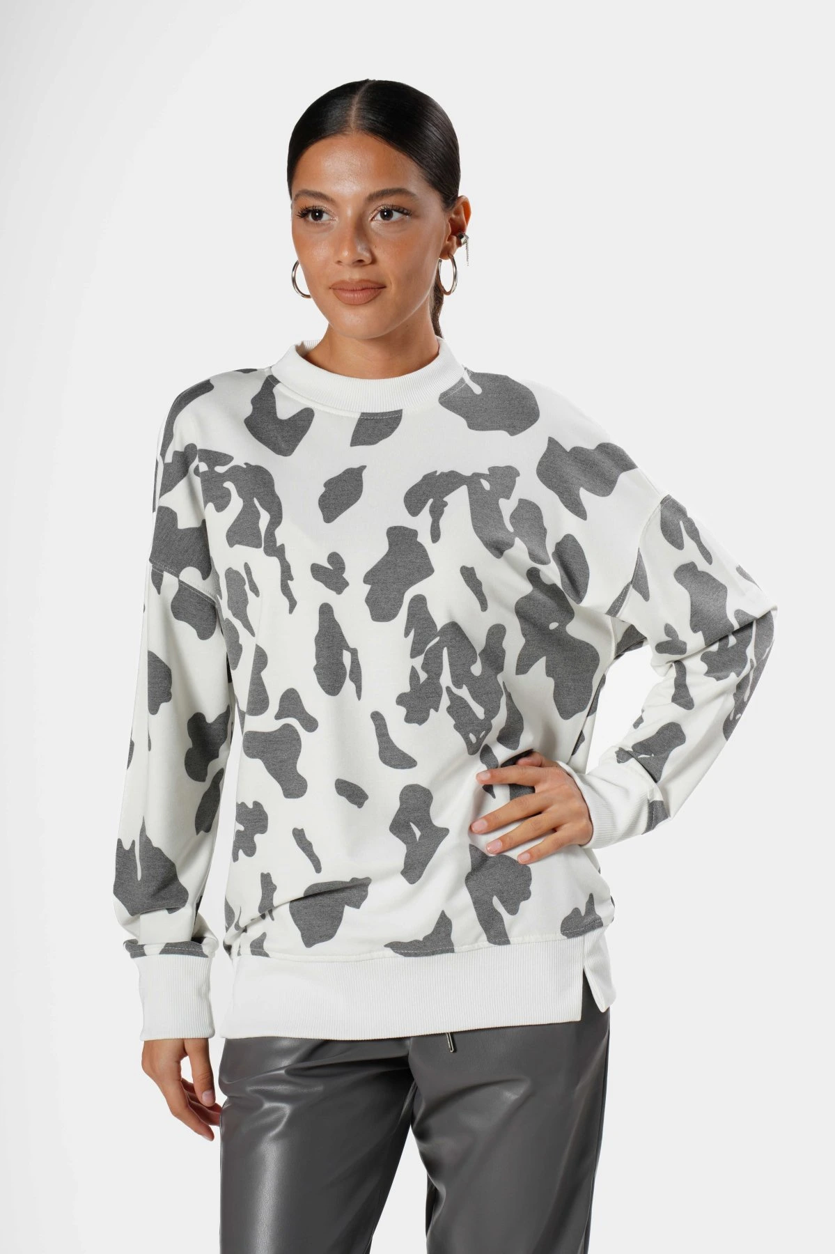 DESENLİ BASİC PAMUK SWEAT – EKRU-ANTRASİT