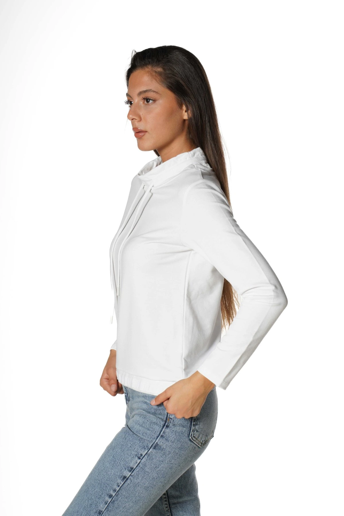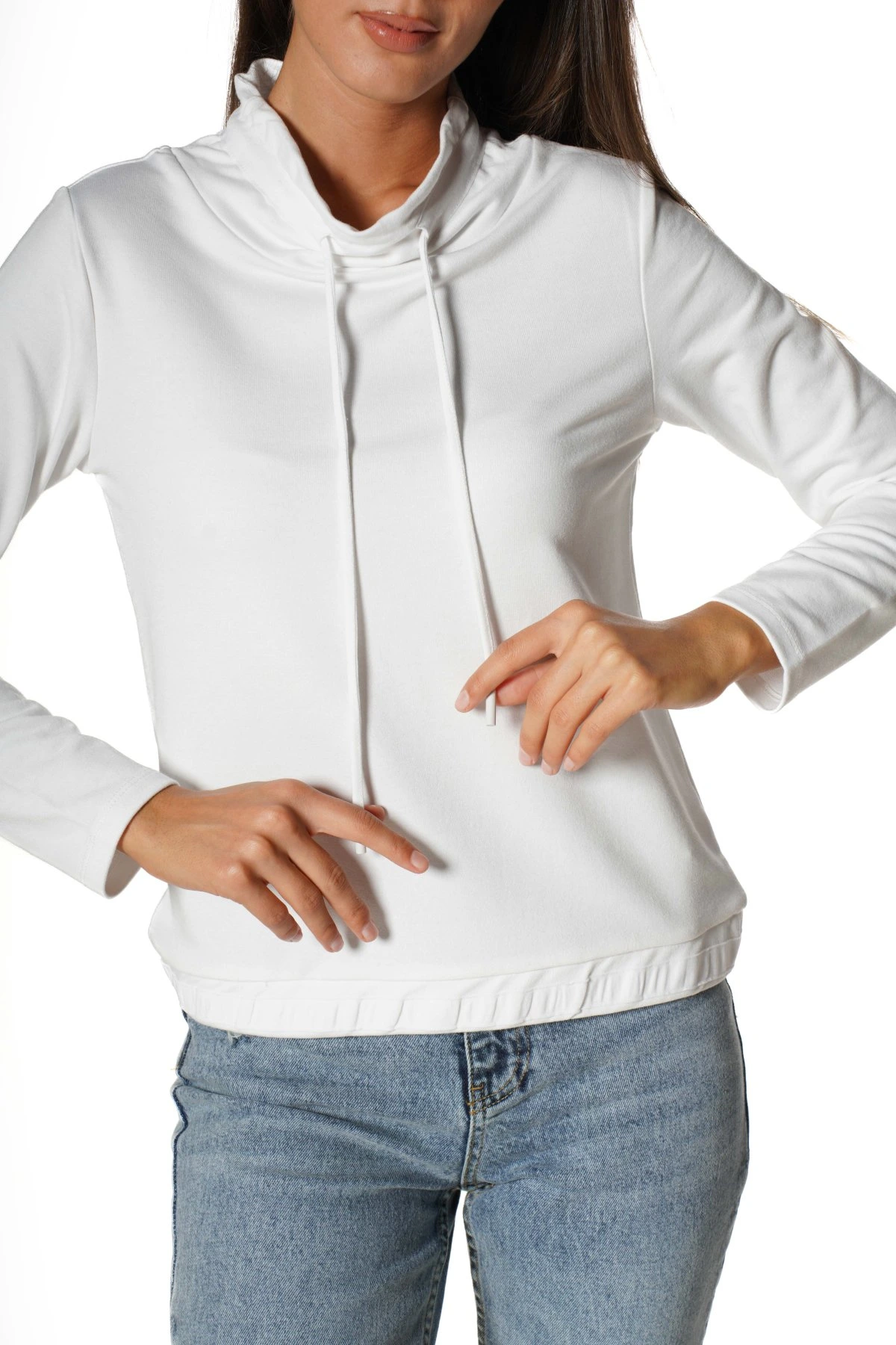 DİK YAKA BAĞCIKLI SWEAT – EKRU