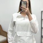 DİK YAKA PARAŞÜT FERMUARLI SWEAT – EKRU