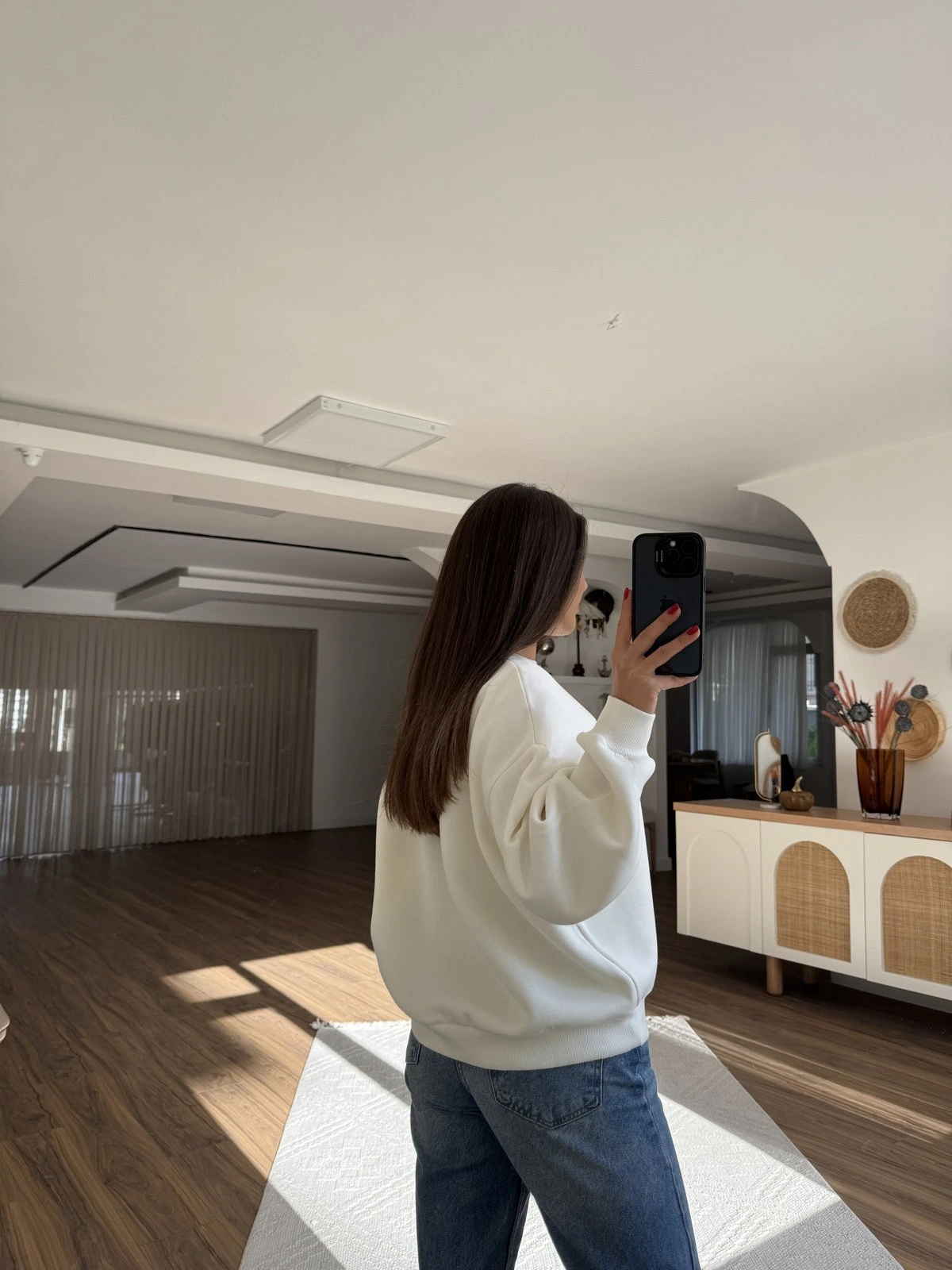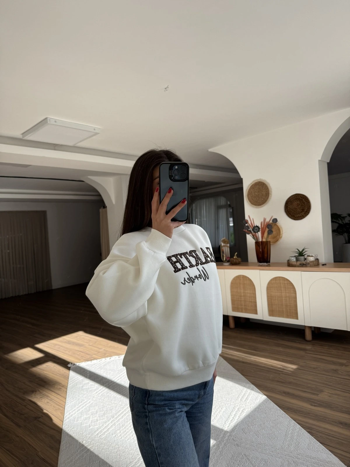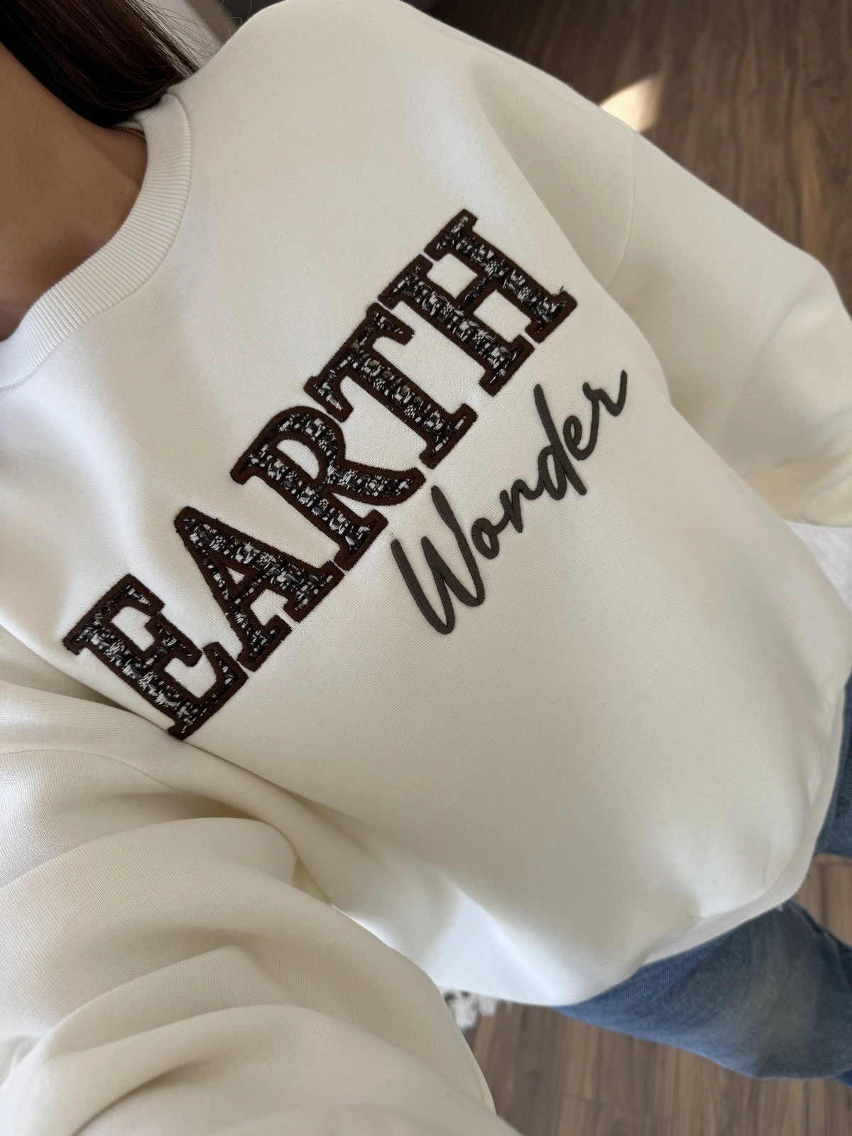 EARTH YAZILI ŞARDONLU PAMUK SWEAT – EKRU