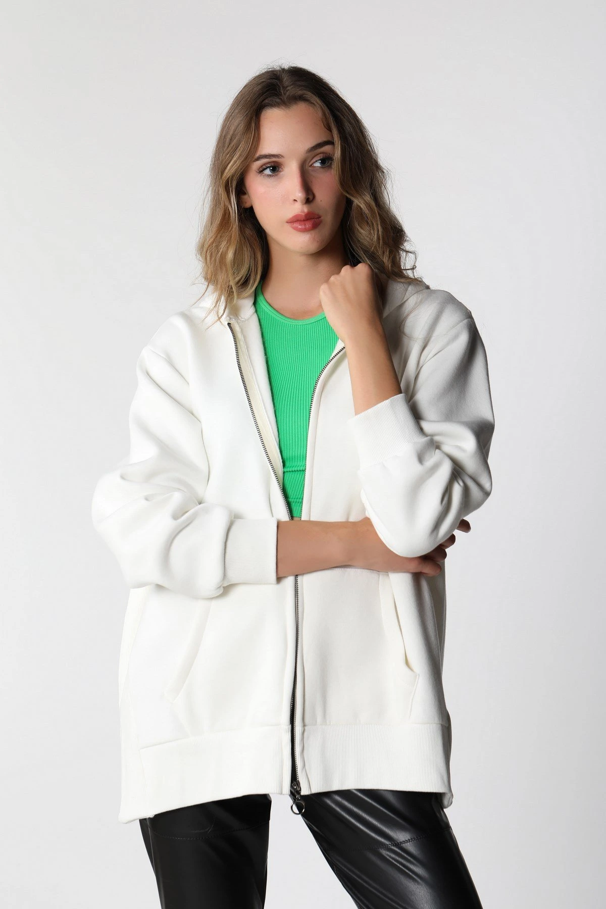 FERMUARLI KAPÜŞONLU SWEAT – BEYAZ