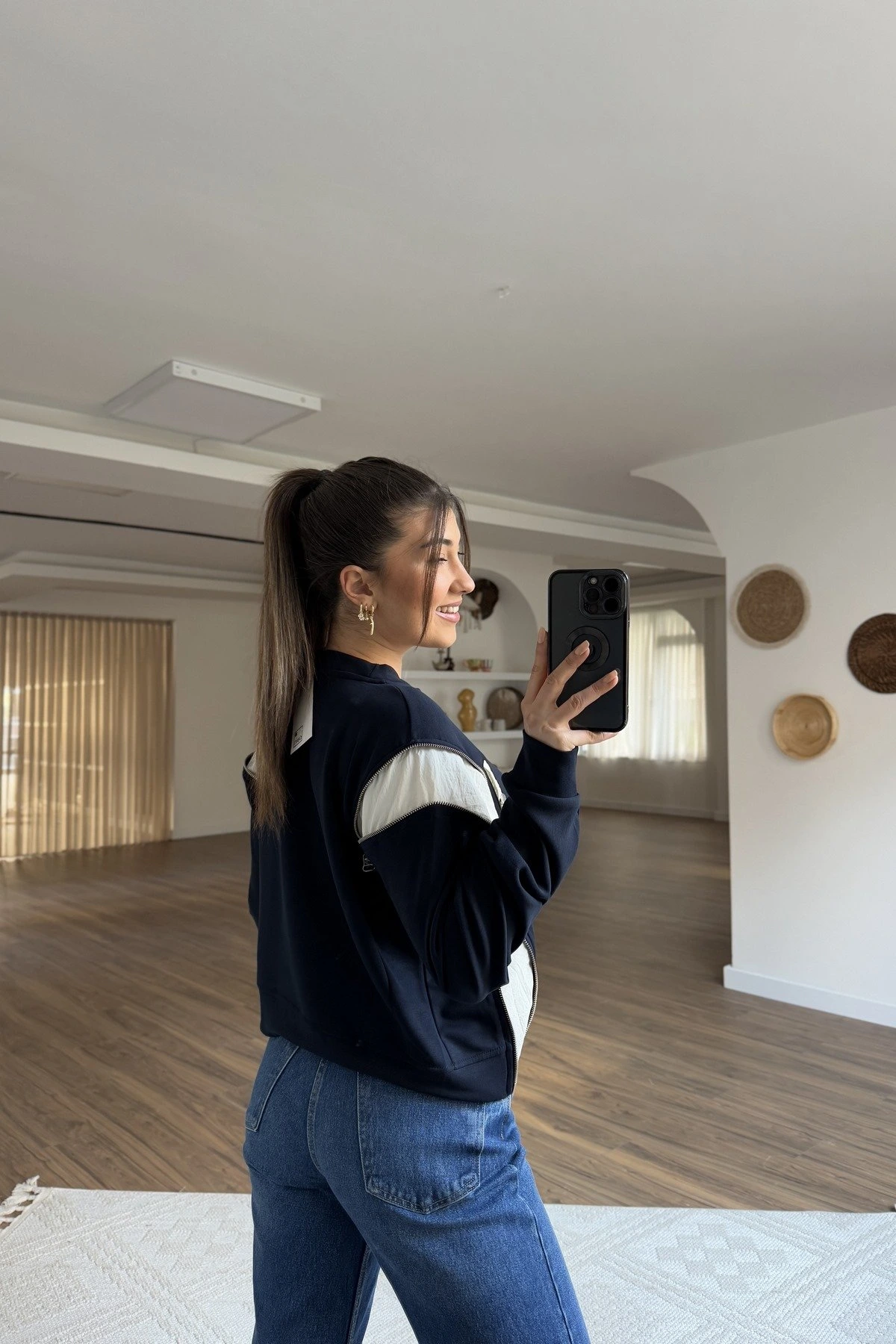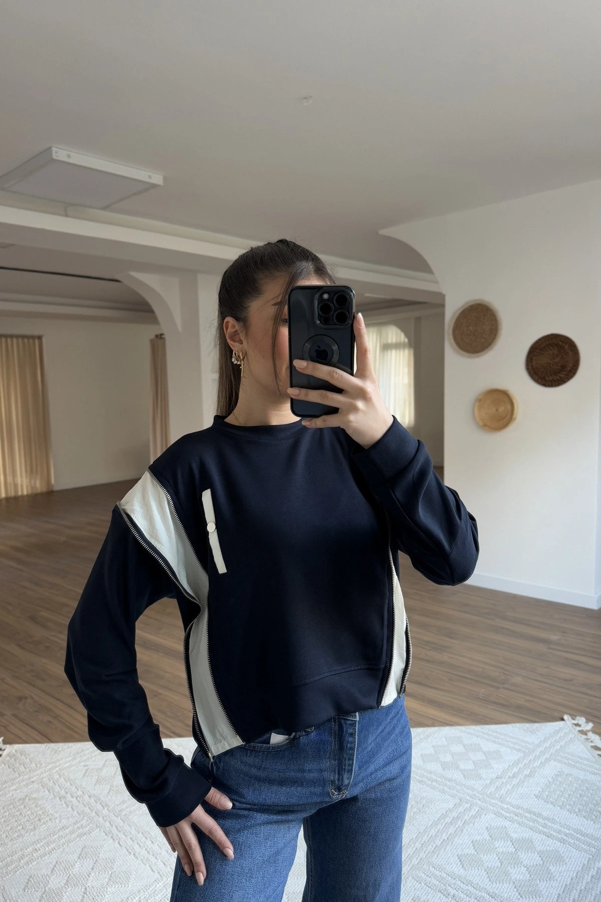 FERMUARLI PARAŞÜT DETAY PAMUK SWEAT – LACİVERT