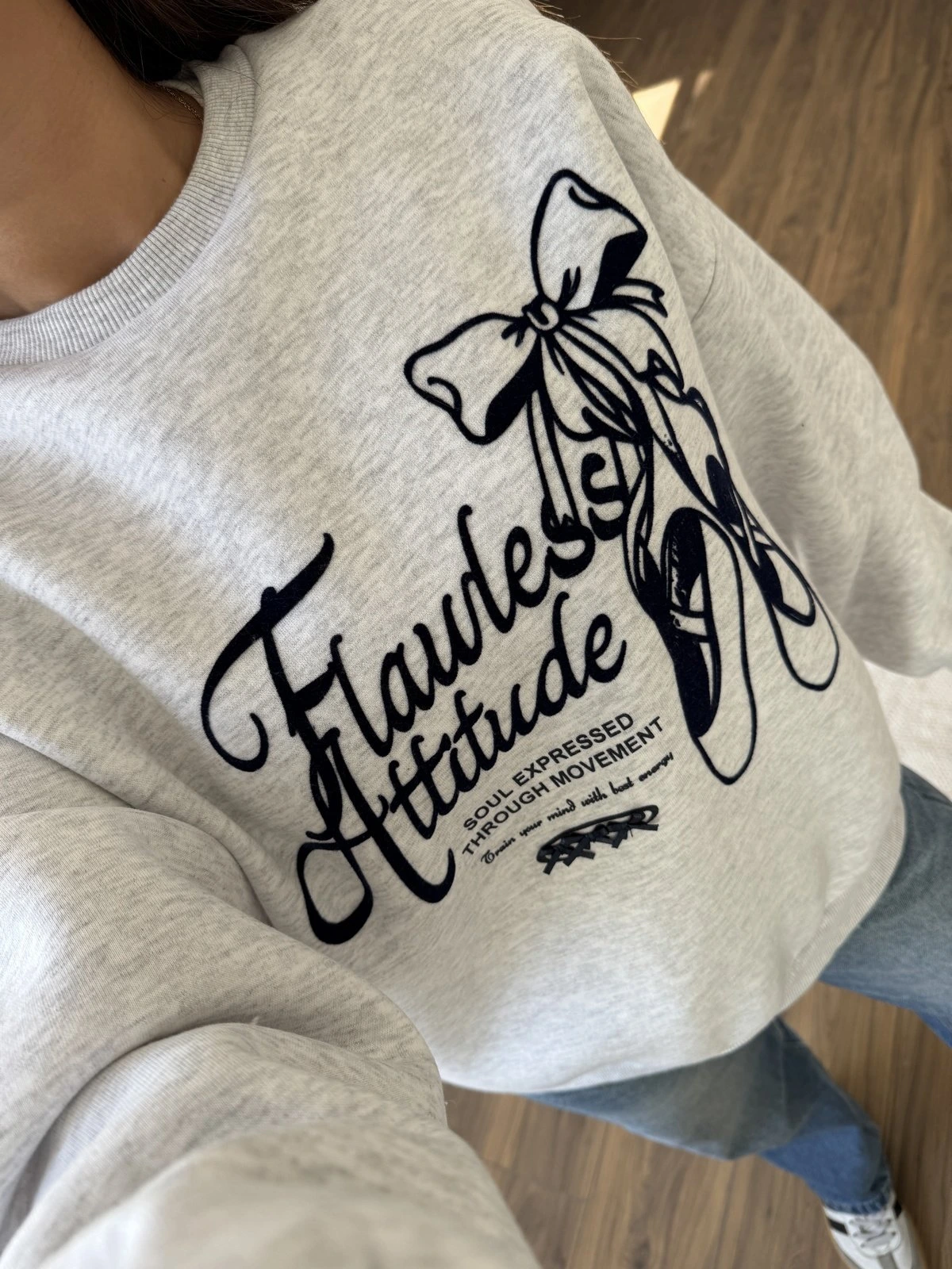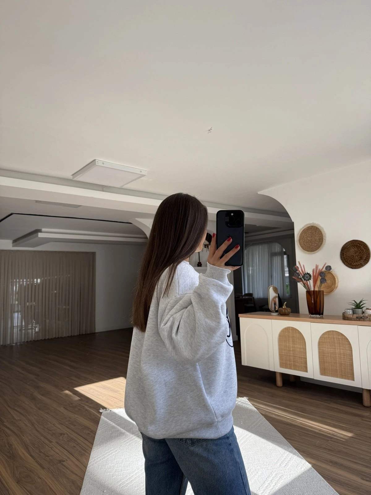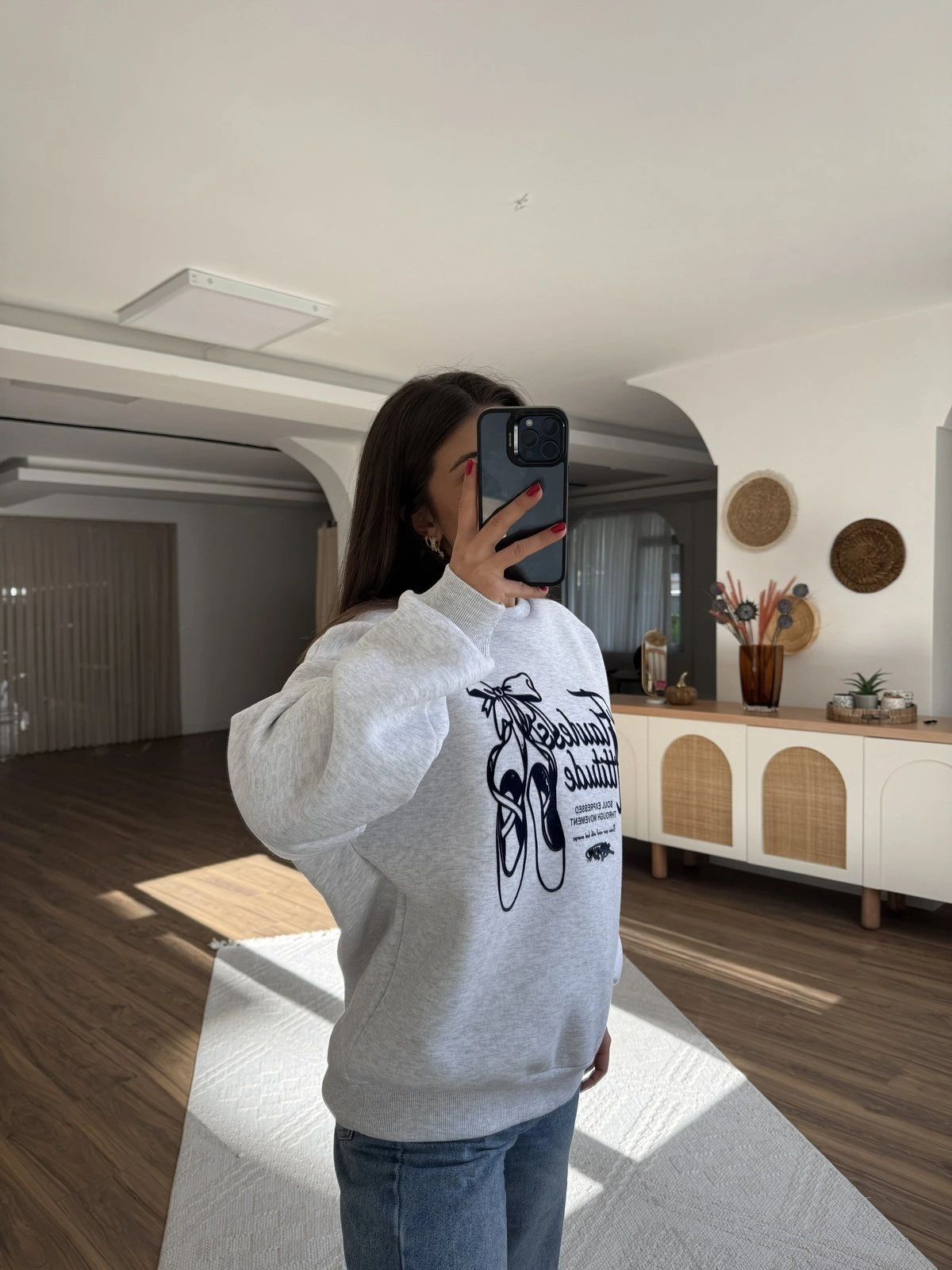 FİYONK BASKI VE DETAY ŞARDONLU PAMUK SALAŞ SWEAT – GRİ MELANJ