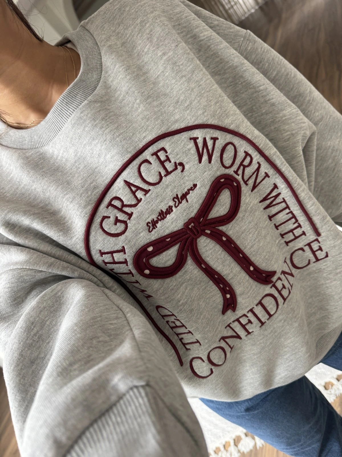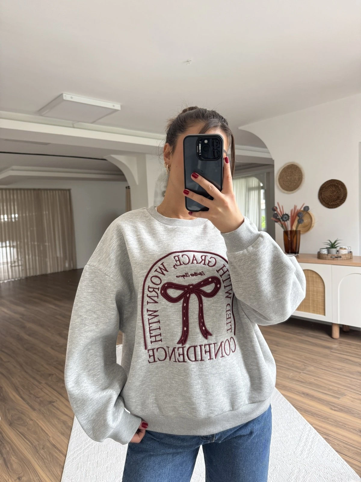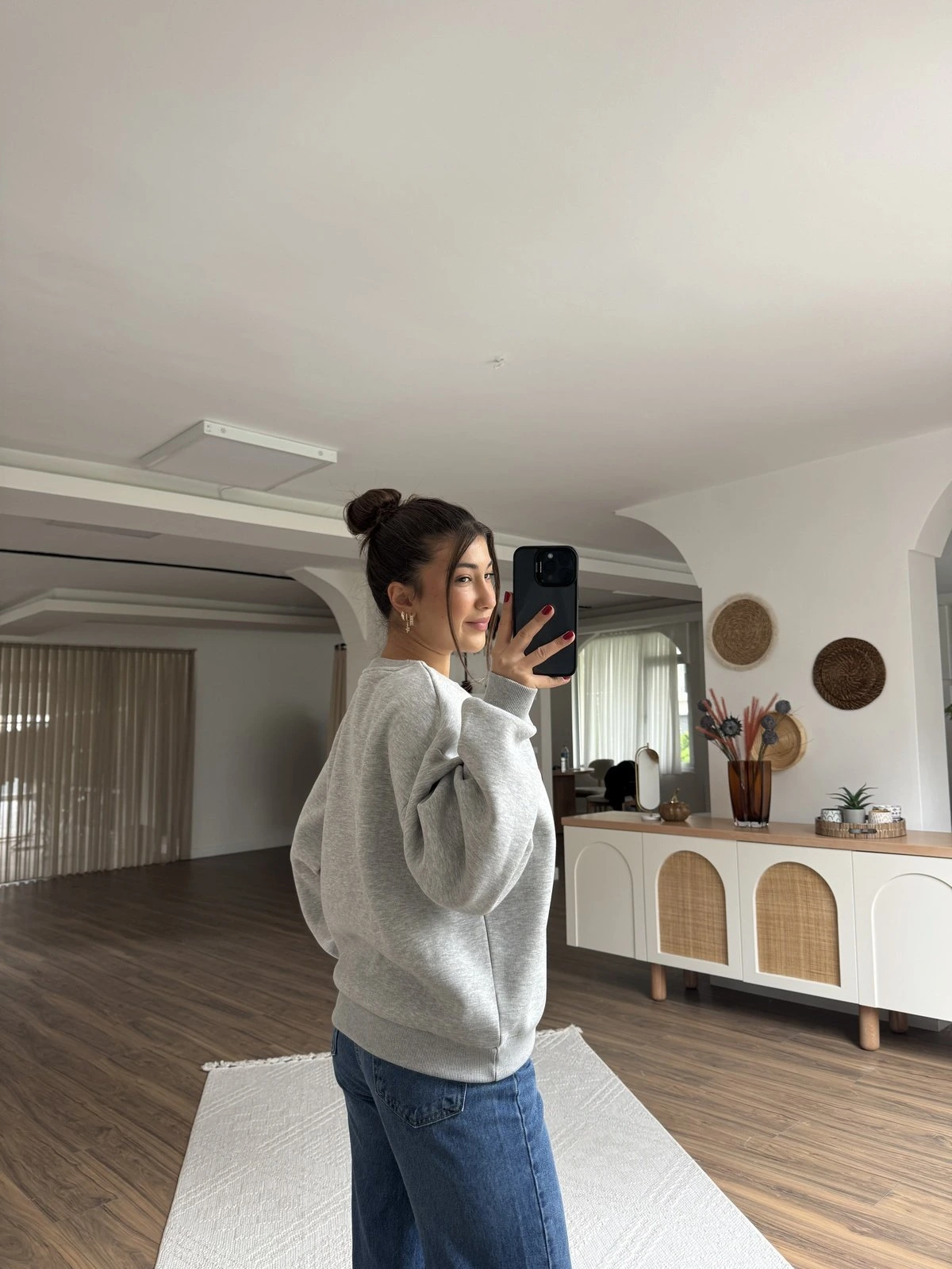 FİYONK DİKİŞ YAZI ŞARDONLU PAMUK SALAŞ SWEAT – GRİ MELANJ