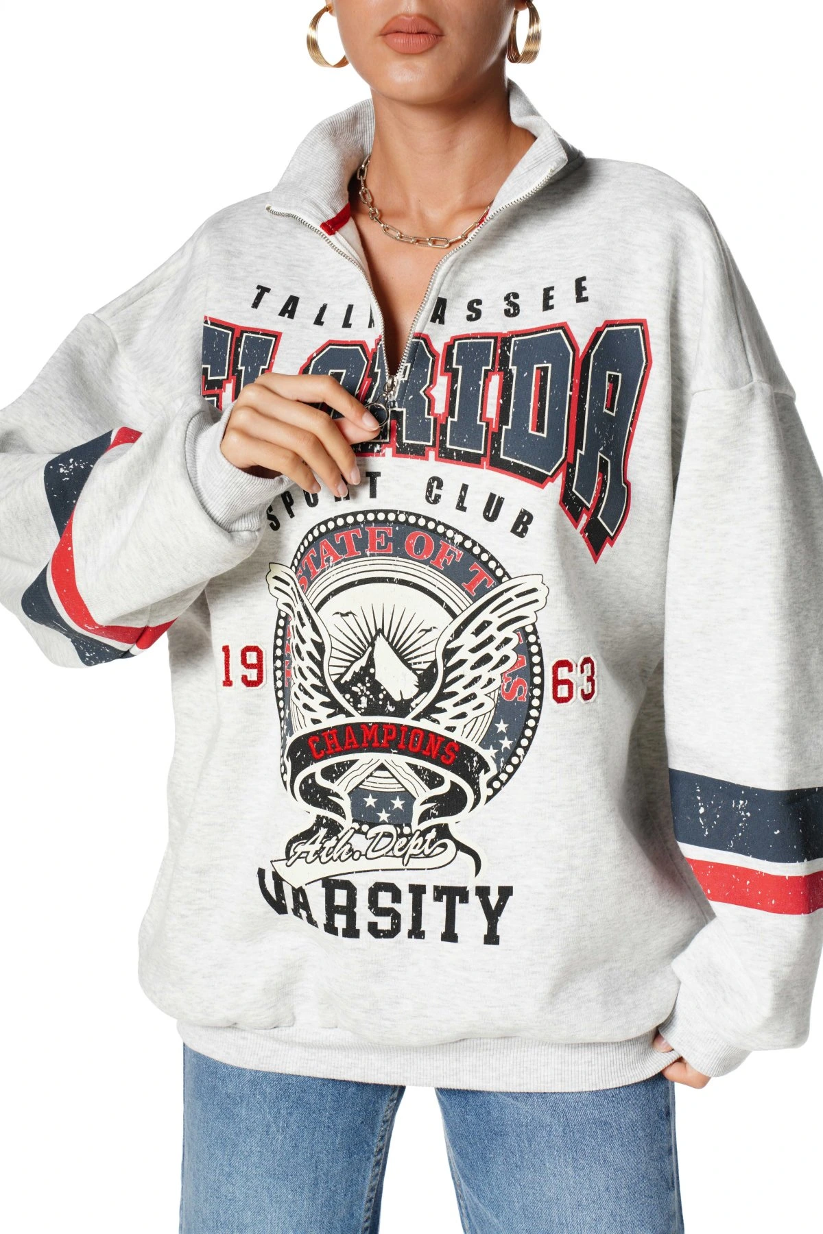 FLORİDA YAZI BASKI DİK YAKA SALAŞ SWEAT – GRİ MELANJ