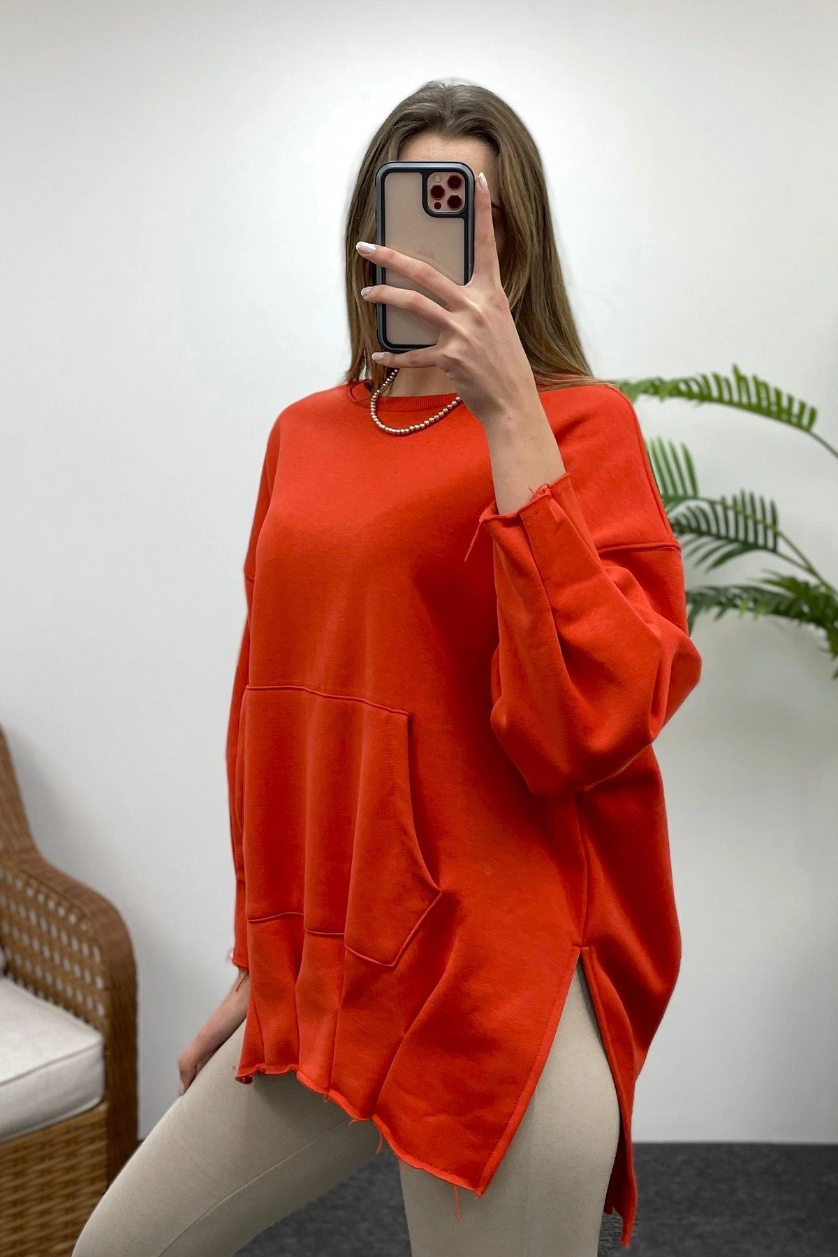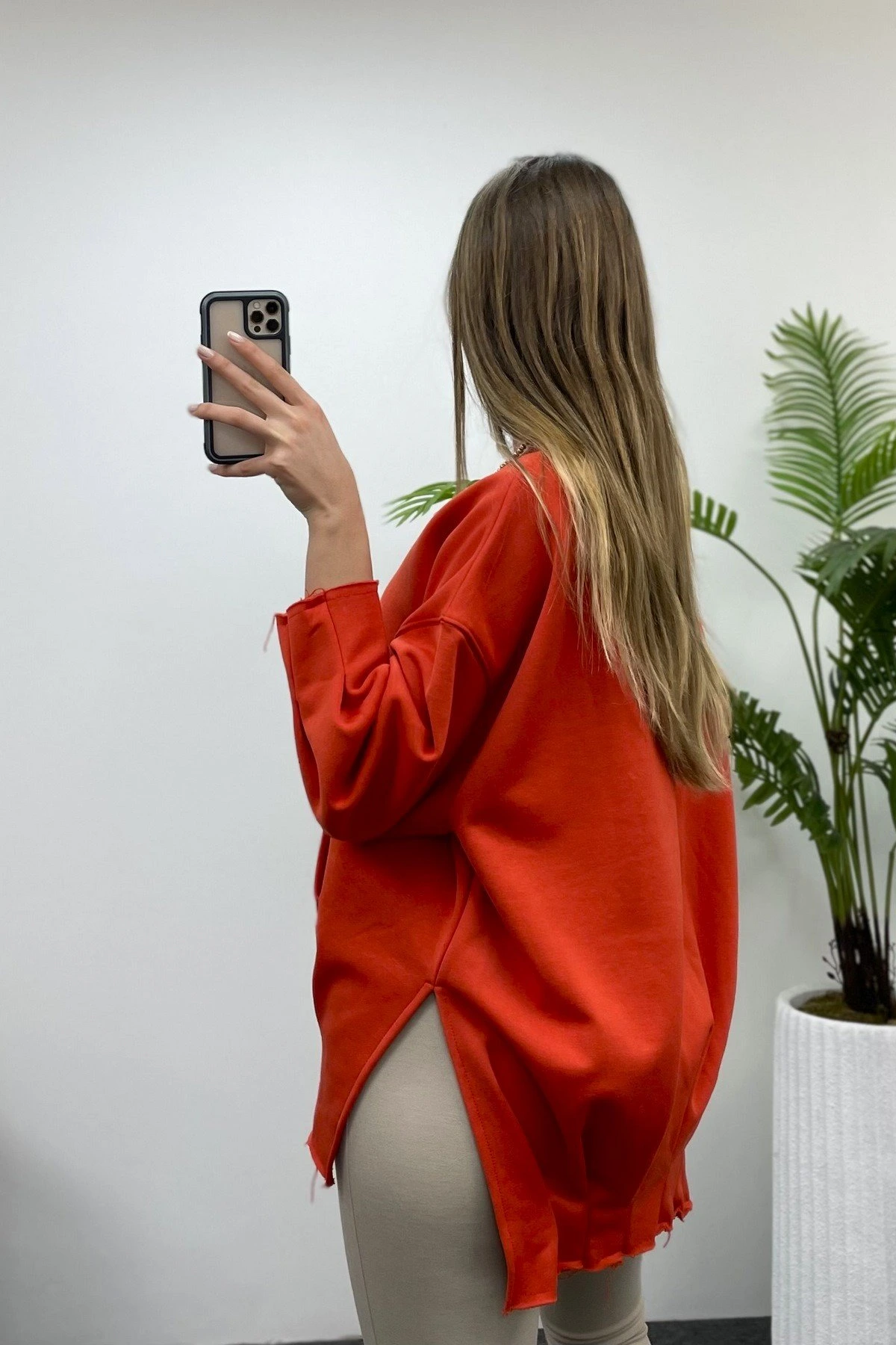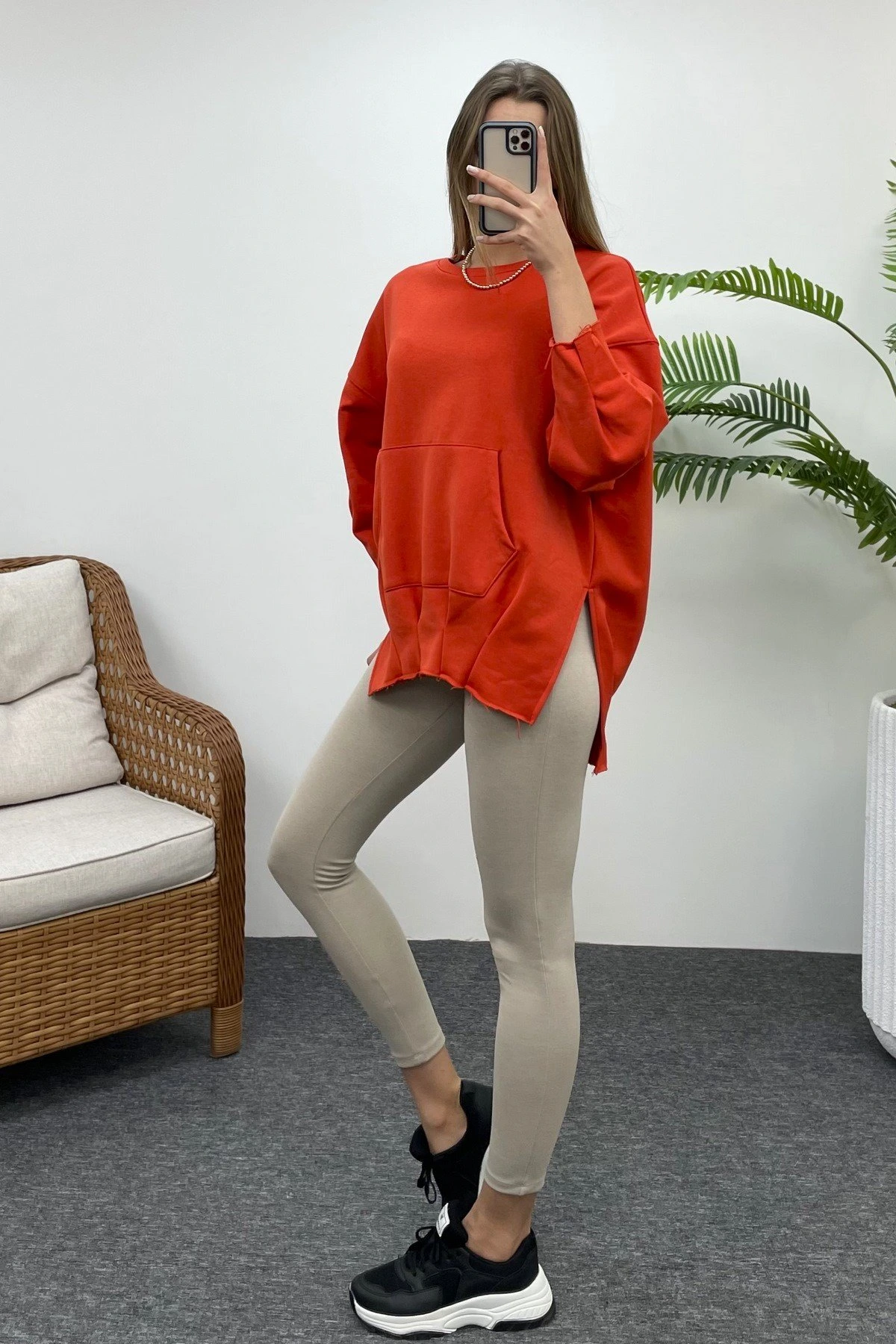 KANGRU CEP BİLEK VE ETEK UCU DİKİŞLİ SWEAT – KİREMİT