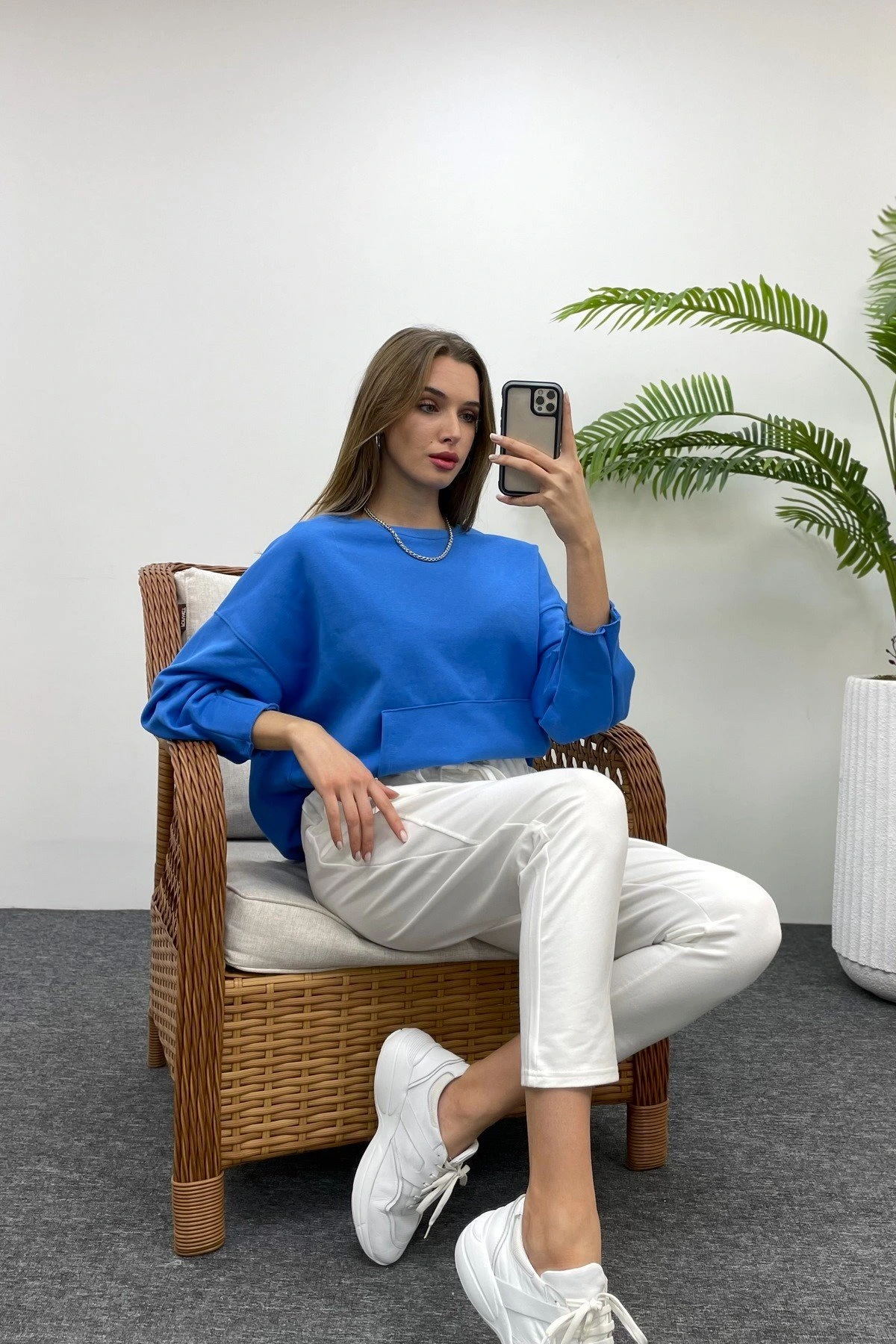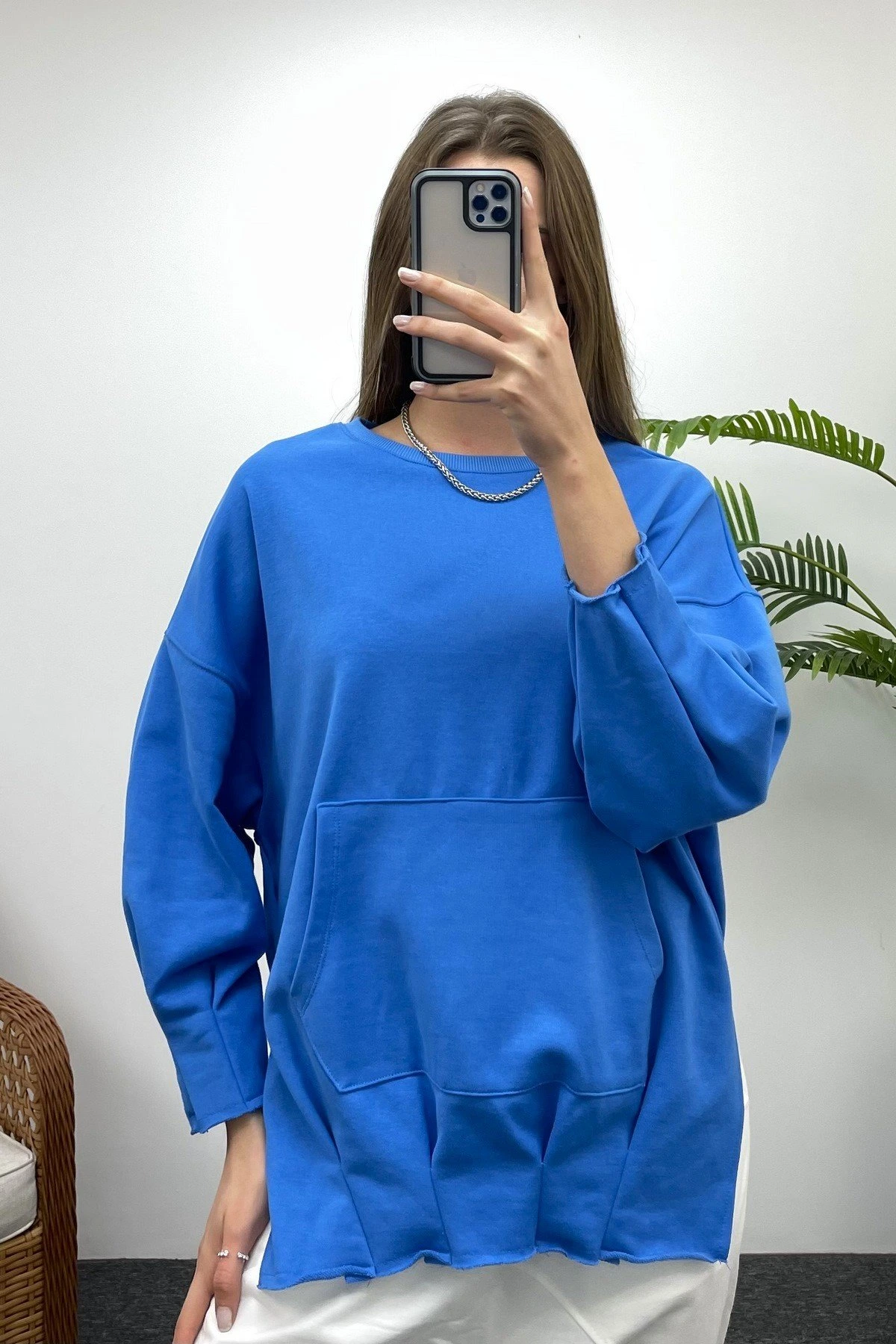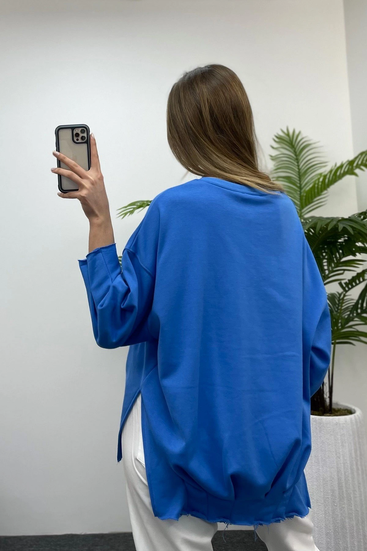 KANGRU CEP BİLEK VE ETEK UCU DİKİŞLİ SWEAT – MAVİ