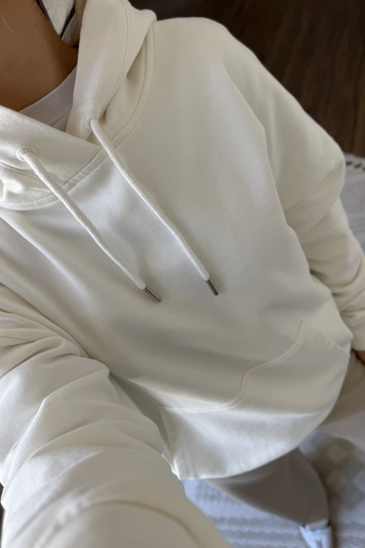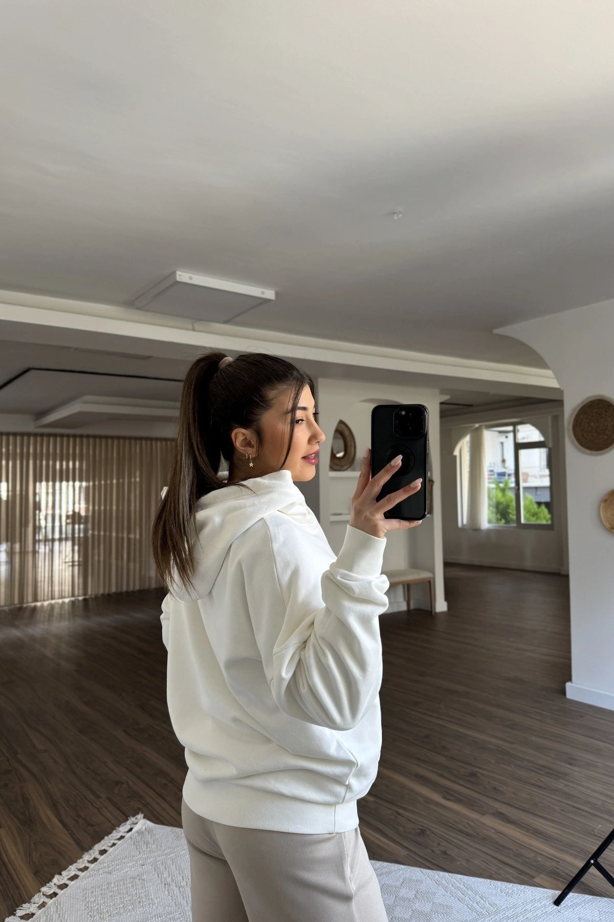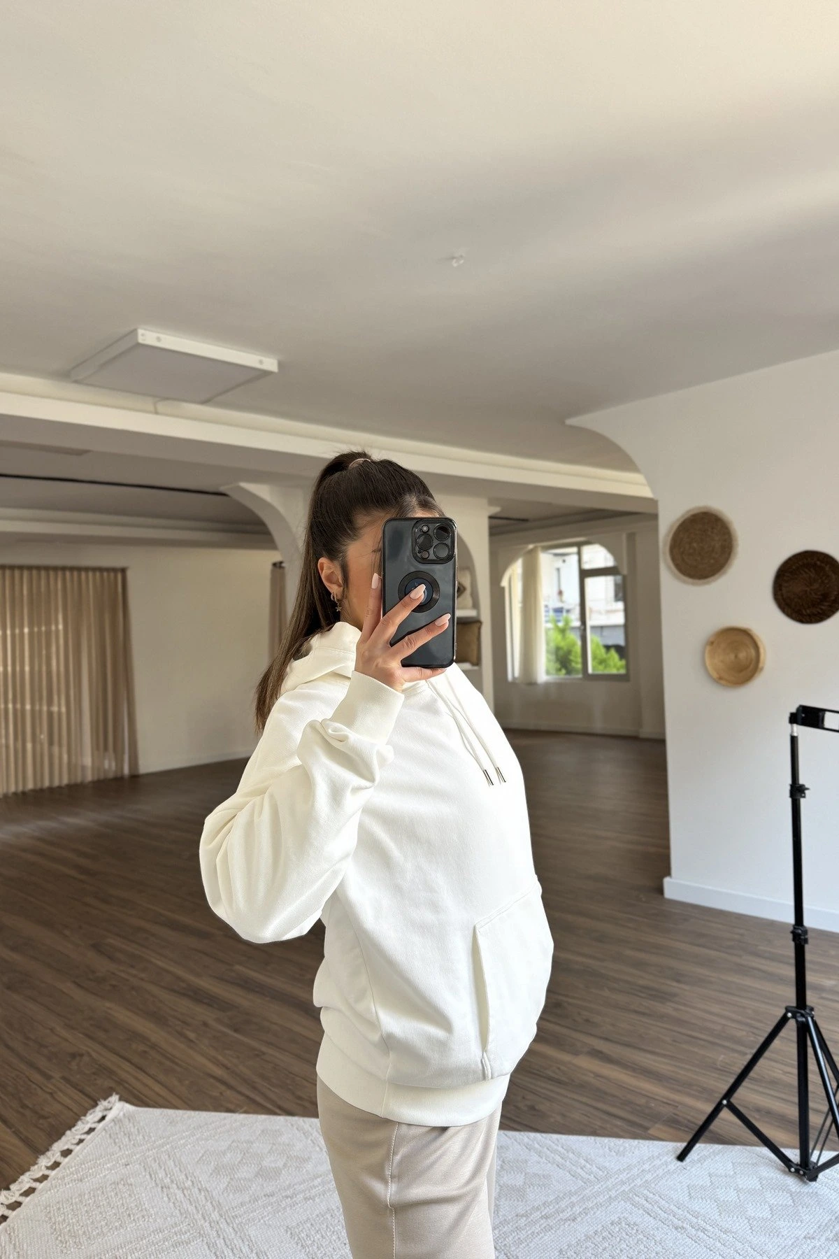 KANGRU CEP KAPÜŞONLU SALAŞ PAMUK SWEAT – EKRU