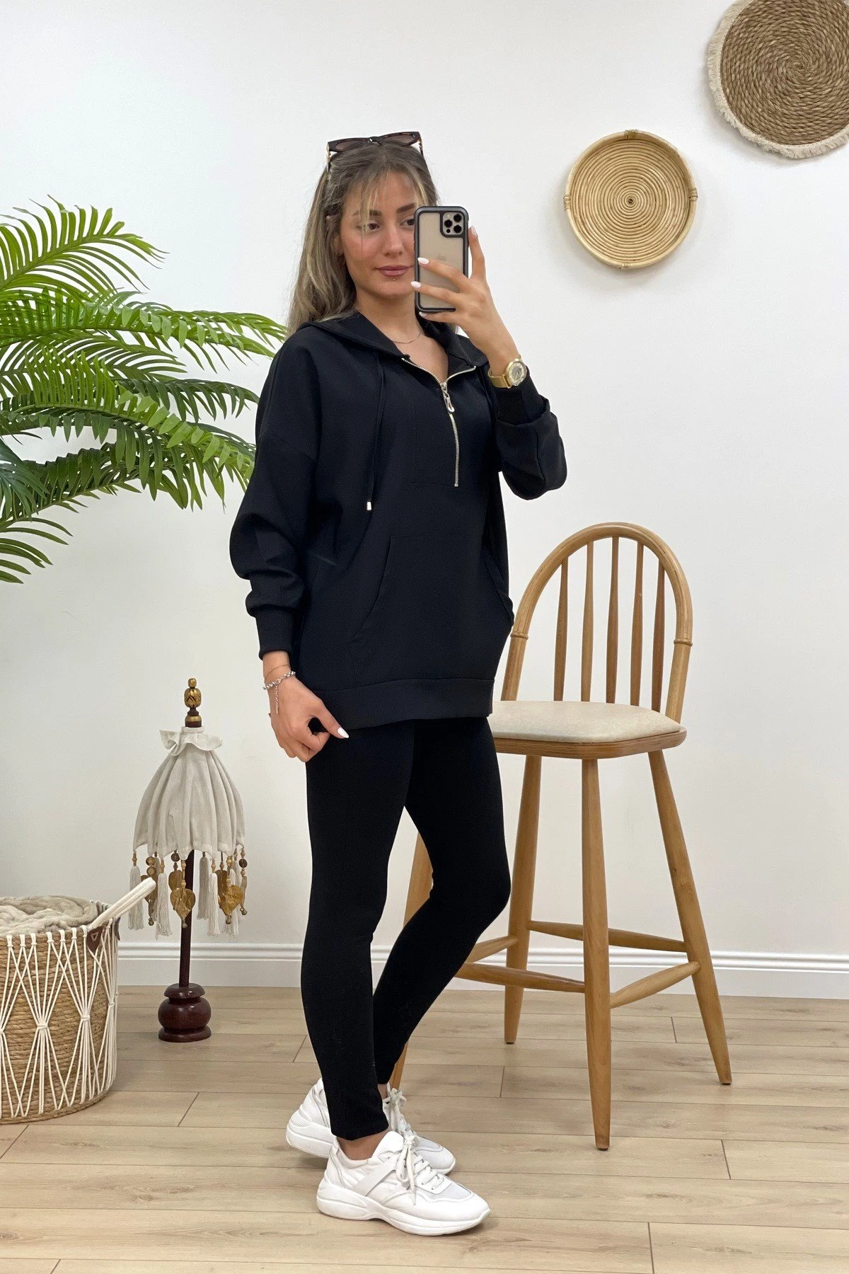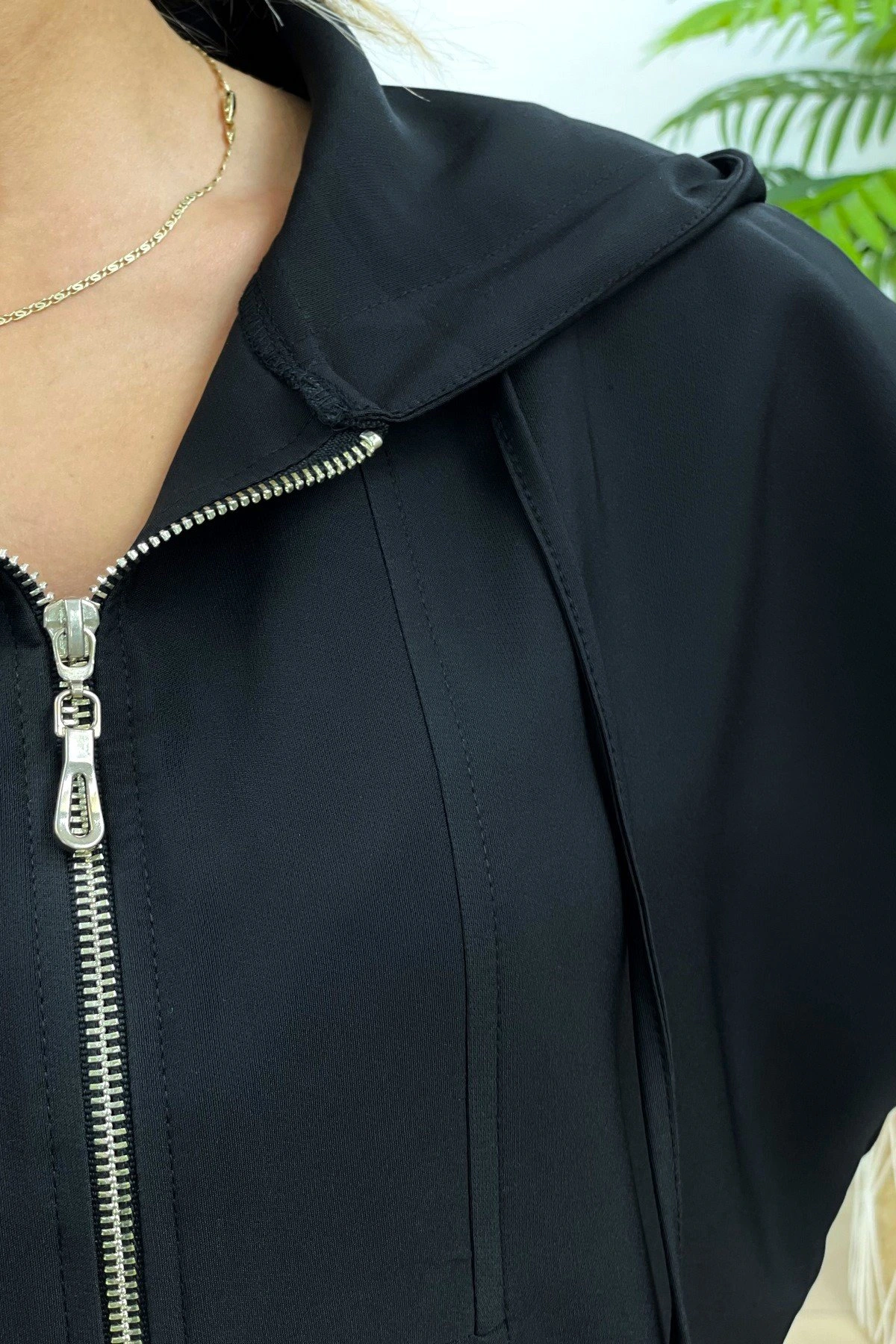 KAPİŞONLU FERMUAR DETAYLI SWEAT – SİYAH
