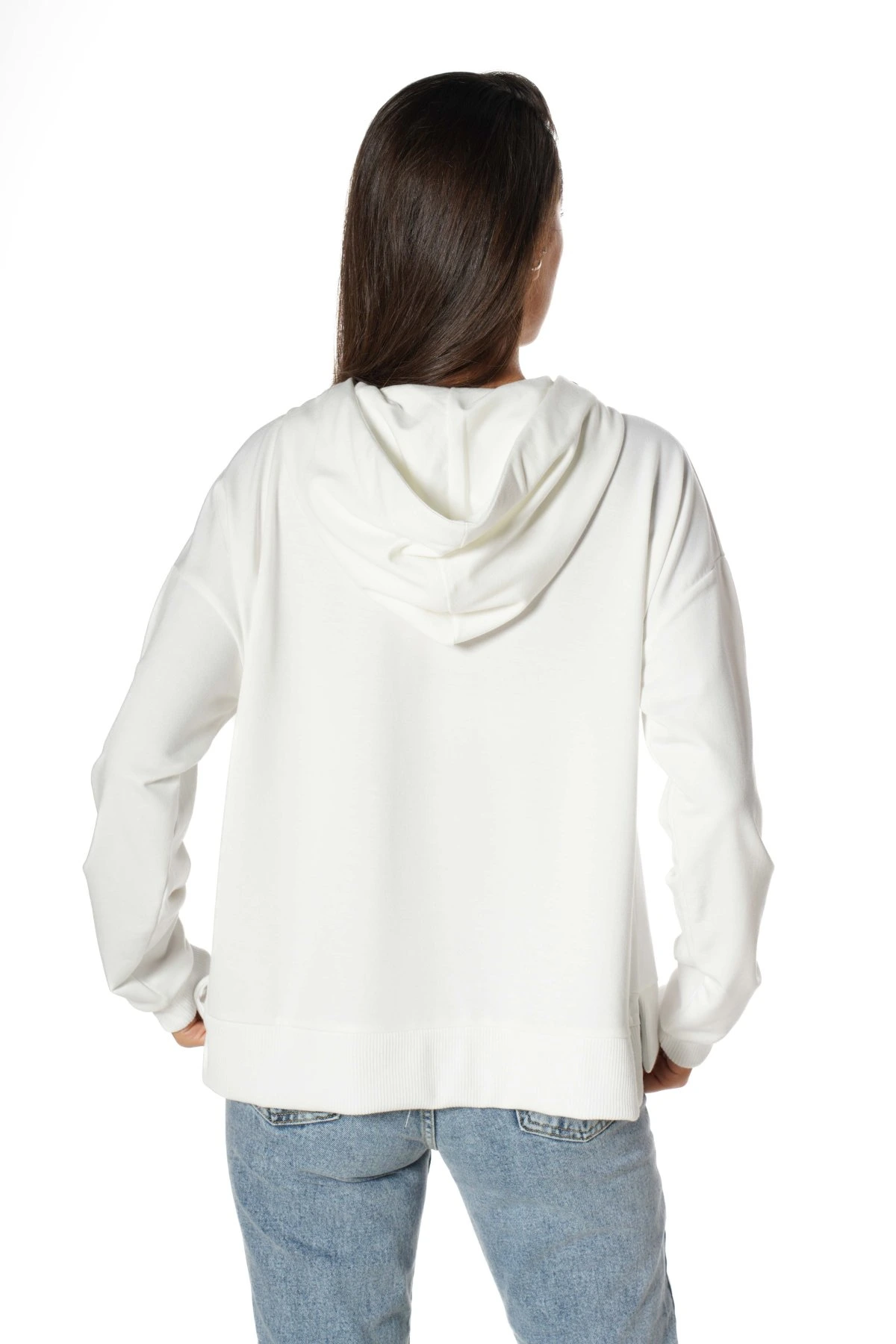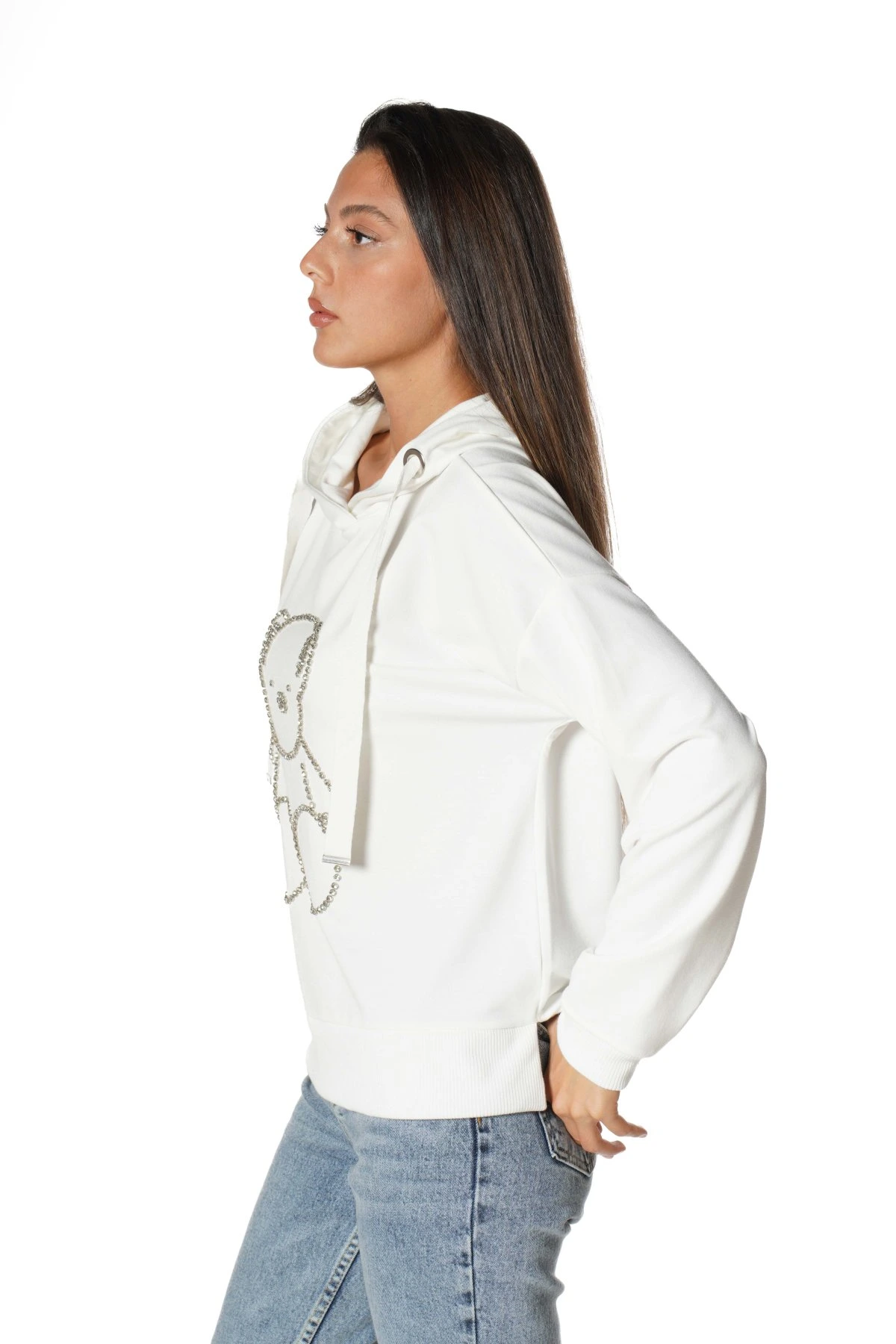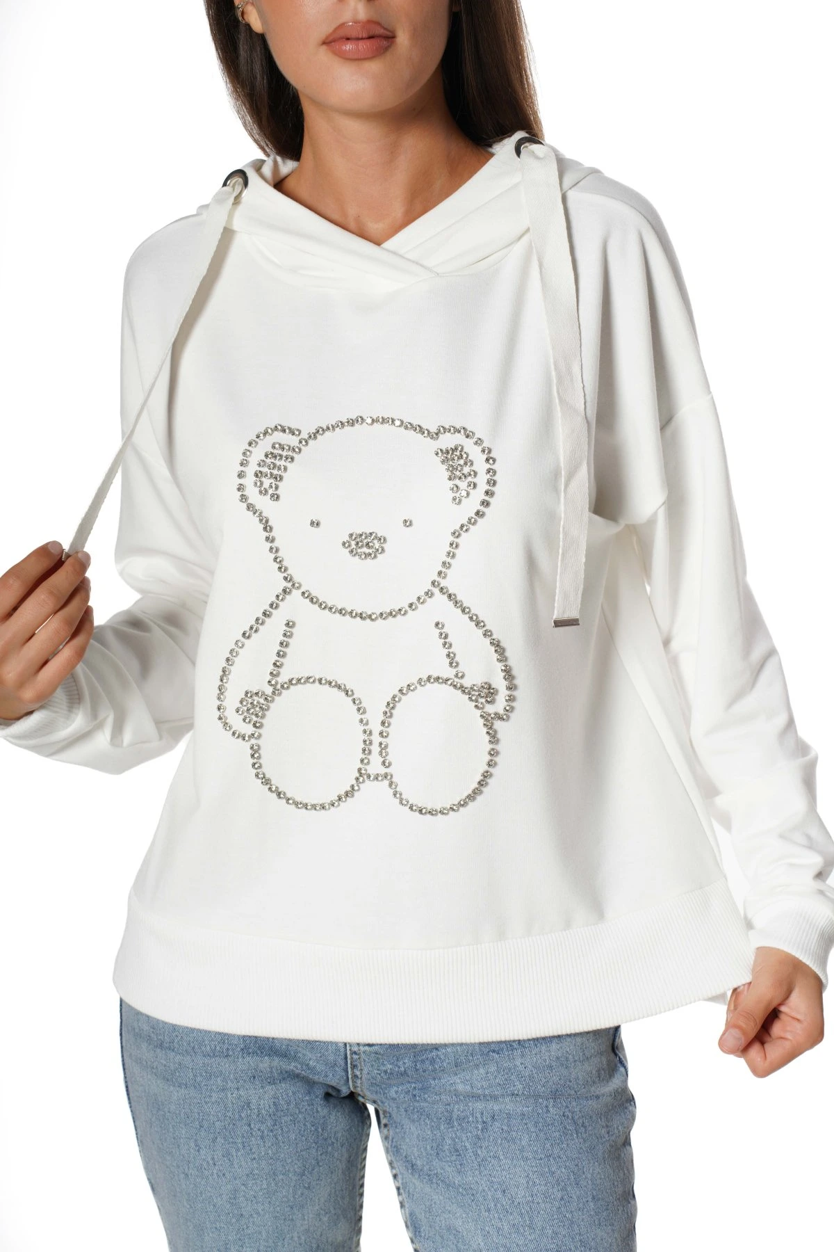 KAPÜŞONLU AYICIK TAŞ İŞLEME PAMUK SWEAT – EKRU